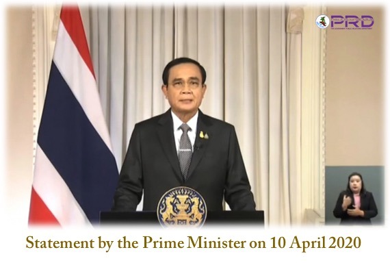 Prime Minister and Defense Minister General Prayut Chan-o-cha on 10 April 2020 issued a statement to inform the people of the Government’s operations to handle the COVID-19 situation and other related issues. The following statement was televised on the Television Pool of Thailand.