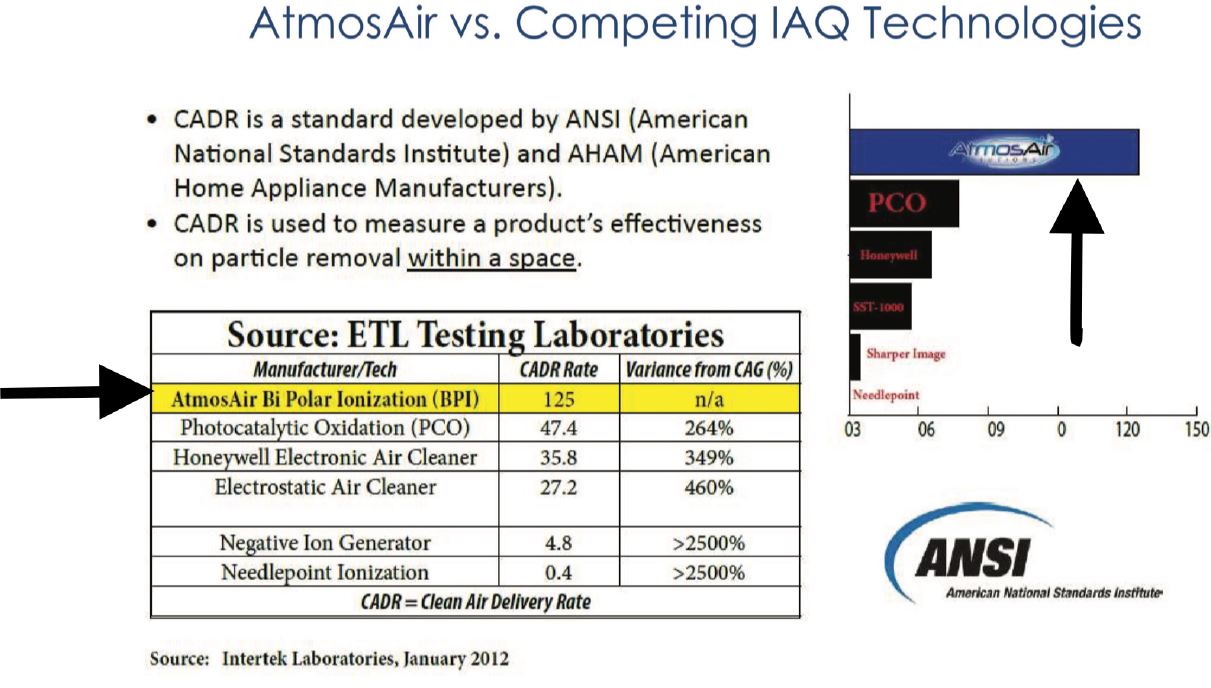 The Result - AtmosAir removes inhalable particles and pathogens – including dust, allergens, molds, VOCs, odors, airborne and surface bacteria, viruses and germs – to create healthy indoor environments where people thrive, while doing it efficiently and cost effectively.