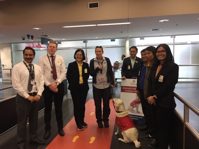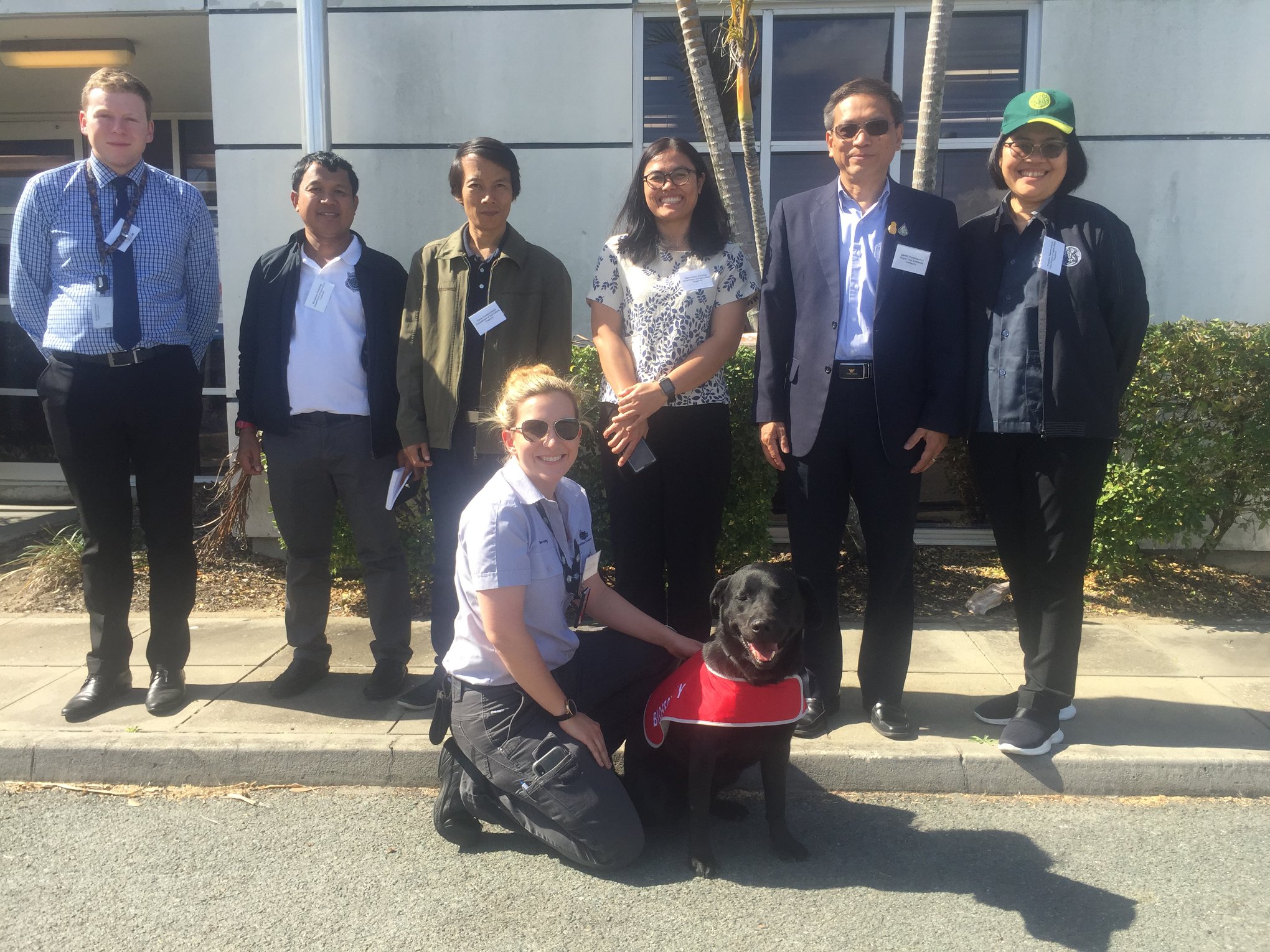 A delegation from the Thai Department of Agriculture recently visited Australia to get a better insight into our biosecurity operations and detector dog capability and training. The Biosecurity Operations team in Sydney showcased Australia’s world-class biosecurity processes, Sydney kennelling facility and the dogs in operation at the airport and mail facility. They also travelled to Brisbane to spend a day with our National Detector Dog trainers, learning about the innovative approaches our trainers take to continually refine and modernise detector dog capability.
