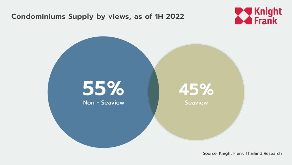 Mr. Nattha Kahapana, Managing Director, Knight Frank Thailand said that, in the first half of 2022, the condominium market in the Cha-Am- Hua Hin - Khao Tao area generally started to improve, compared to the same period last year, given the relatively low supply of condos in the market and the fact that developers have been consistently organizing promotional campaigns to sell their remaining units. One new in-land project was launched in the first half of the year, Hay Hua Hin, which starts at around 1.39 million baht per unit. There were no new projects on the coastline launched during the first half of the year and the supply in the market remains low. According to our market research, it was found that new high-rise projects will be launched in the third quarter of 2022, which should increase competition and diversify the condominium market in Hua Hin.