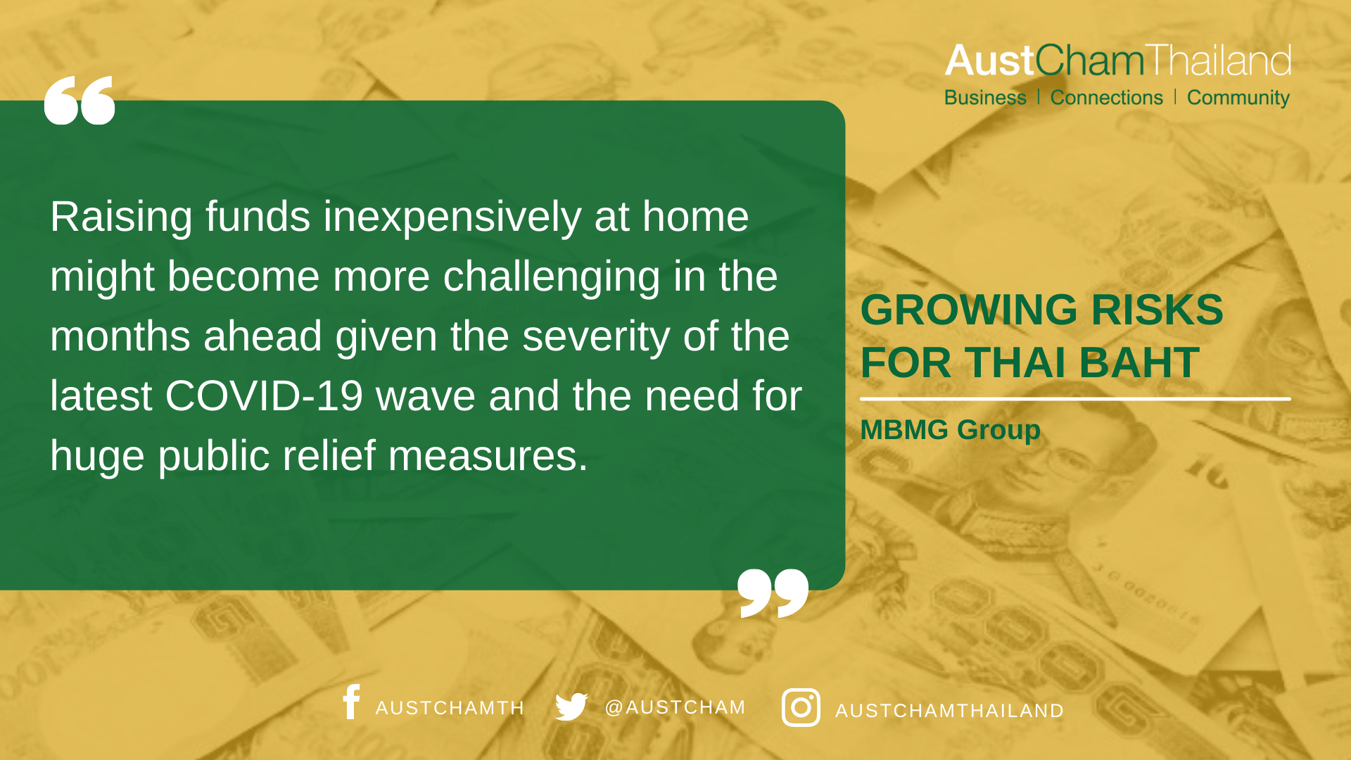 Sooner than later, the government will be forced to pass legislation that will enable it to raise public debt beyond 60% of GDP and we expect that this will further weaken the THB, and further exacerbate investment abroad.