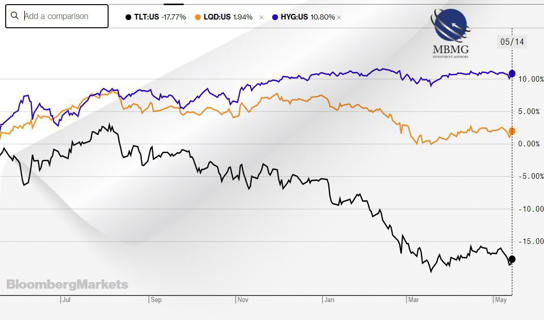 Capital always does what capital does. It flows to the places that make the highest returns and the highest returns over the last year were some pretty crazy places. As we know it was Tesla, Ark funds, cryptos and SPACs (so-called ‘blank cheque’ special purpose vehicles where well-known managers raise funds from investors, and then find venture capital and private equity opportunities to invest into and to list on markets in reverse listings and public offerings).. That's just where the best market returns have been. That's a fact of how liquidity fuels bubbles but it doesn’t last forever and the liquidity that's driven these bubbles is not coming in at the same rate anymore so we could see these bubbles heading into a pretty nasty storm. Remember, liquidity-fuelled, bubbles need continued increasing inflows and we're not getting that anymore.In short, liquidity has fuelled risk assets, especially meretricious[1] ones, but value is difficult to discover in risk assets, except where it reflects discounts in other asset classes such as gold bullion, that hasn’t attracted bubble capital.Liquidity has largely Ignored Higher Quality, less Volatile assets.Another example of an underperforming asset class is US treasuries. In a mirror image of the equity market, high risk, illiquid corporate bonds have dramatically outperformed both less risky and less illiquid high quality corporate bonds and highest quality, most liquid treasuries: