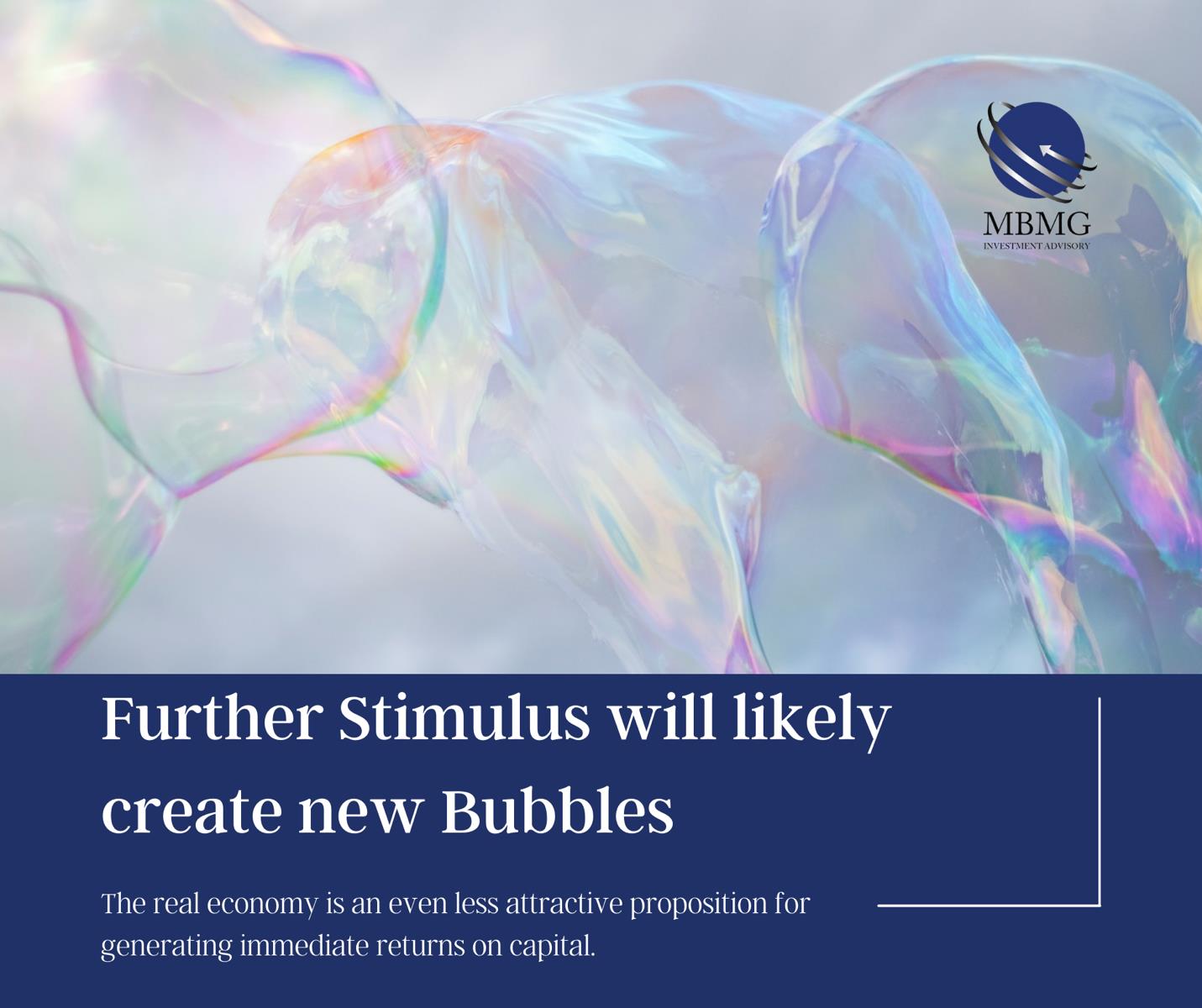 Further Stimulus will likely create new Bubbles The real economy is an even less attractive proposition for generating immediate returns on capital and therefore, along with low risk, liquid assets, appears to have also failed to benefit. Capex and hiring remain extremely subdued (we’ve covered this in pieces such as The value of US 20 year treasuries has fallen by over 11% this year ...Should we all be buying treasury bonds? and Stimulus – Will it Work?MBMG NOTEIn short, Mind the Gap (between the bubble valuations & the real economy), be aware of pricing distortions driven by the huge liquidity inflows experienced over the last year and the scale of further inflows needed to sustain these bubbles, especially as the real economy continues to deteriorate, increasing the gap between the price of meretricious assets and hamstrung economic fundamentals.