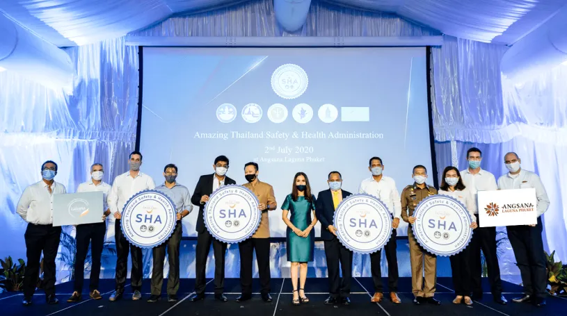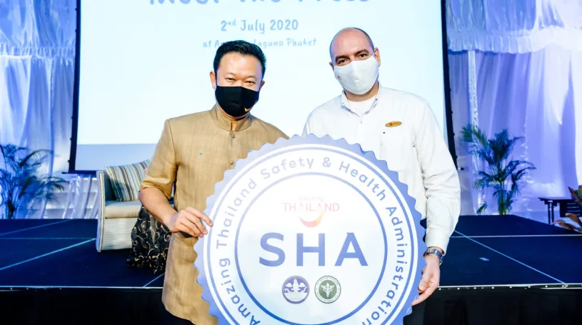 Mr. Yuthasak Supasorn, Governor of the Tourism Authority of Thailand (TAT), presented the Amazing Thailand SHA certification to the management of the Angsana Laguna Phuket and Angsana Villas Resort Phuket on 2 July, 2020 in a ceremony officiated by Mr. Narong Woonsiew, the Governor to Phuket at Angsana Convention and Exhibition Space (ACES). The Amazing Thailand SHA certification is a unique certification scheme aimed to prepare the Thai tourism industry for the recovery period and enhance confidence amongst international and domestic tourists.