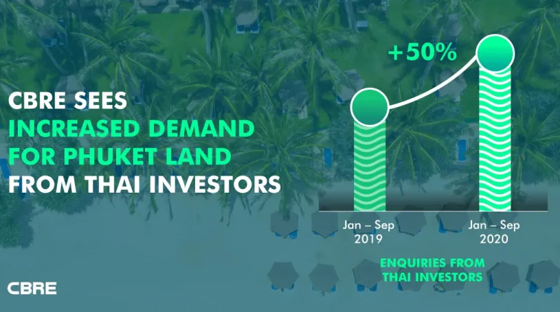 Bangkok – October 7, 2020 – In the past nine months of 2020, Phuket has weathered both the economic storm and the business impact from the loss of foreign tourists caused by the virus outbreak. Although its desirable land supply remains scarce, CBRE, a leading international property consultant, has discovered a noticeable increase in demand from domestic investors and individual buyers.