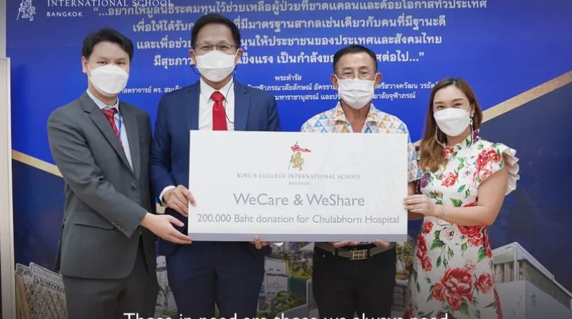 In January 2022, King's College International School Bangkok donated 200,000 Baht to the Chulabhorn Royal Academy in support of the Bhadra Maharajanusorn Foundation, with Air Vice-Marshal Dr. Santi Srisermphoak, Deputy Secretary of Chulabhorn Royal Academy, as an assignee. King's Bangkok would like to thank the Chulabhorn Royal Academy for providing vaccines and medical assistance to Thai society during the COVID-19 pandemic and beforehand. We sincerely hope that our small contributions, when combined with those of other donors, will enable and encourage Chulabhorn Royal Academy to take further steps for the good health of Thai people