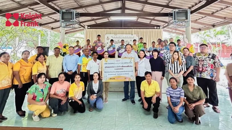 Khun Phanom Kanjanathiemthao , Chairman of Knight Frank Thailand, has donated funds to purchase Thai musical instruments for Wat Na Huai School (Saeng Kla Pracha San School). This initiative aims to enhance students' learning experiences and instill a love for Thai art and culture in the younger generation.
