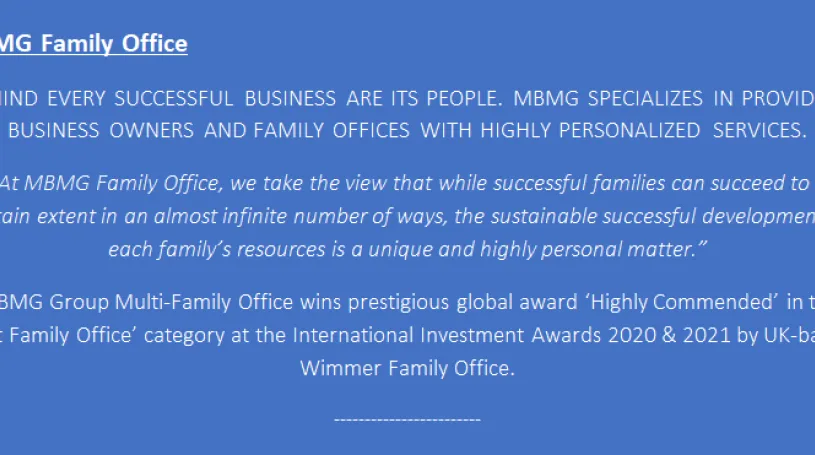 This Flash is a follow-up to our recent release talking about the international award won by MBMG’s Investment Advisory service in recognition of our firm’s multi-family office service (MBMG Family Office). Since then, we have had a few clients responding by asking simply what Family Office was.What does Family Office entail?