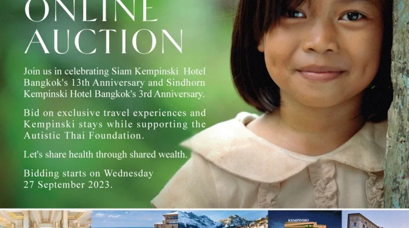 The auction aims to fund financial support to the Autistic Thai Foundation to promote health through wealth for children and adults diagnosed as autistic in Thailand.