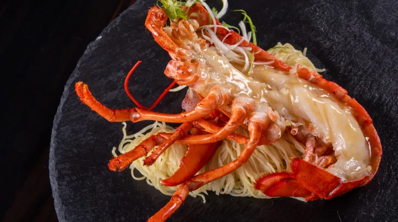 Signature dishes include Braised Boston Lobster with Egg Noodles Ginger and Spring Onion, Sautéed Australian Beef Tenderloin with Garlic and Black Pepper Sauce, Peking Duck and Dim Sum selection
