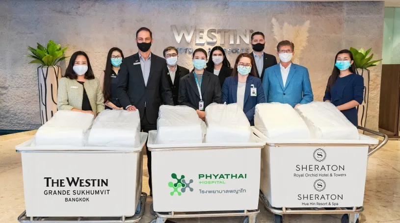 The Westin Grande Sukhumvit, Bangkok, led by Mr. Peter Lucas, General Manager of the Westin Grande Sukhumvit and Mr. Michael Schlueter, General Manager of the Royal Orchid Sheraton Hotel & Towers along with their respective management teams collaborated on the donation of 550 towels to Phayathai Hospital. This contribution represents both a display of good will and serves as a marker for the hotels’ initiative towards a commitment to clean which not only requires cleanliness within the hotel but also to assist with the cleanliness of the community as well.