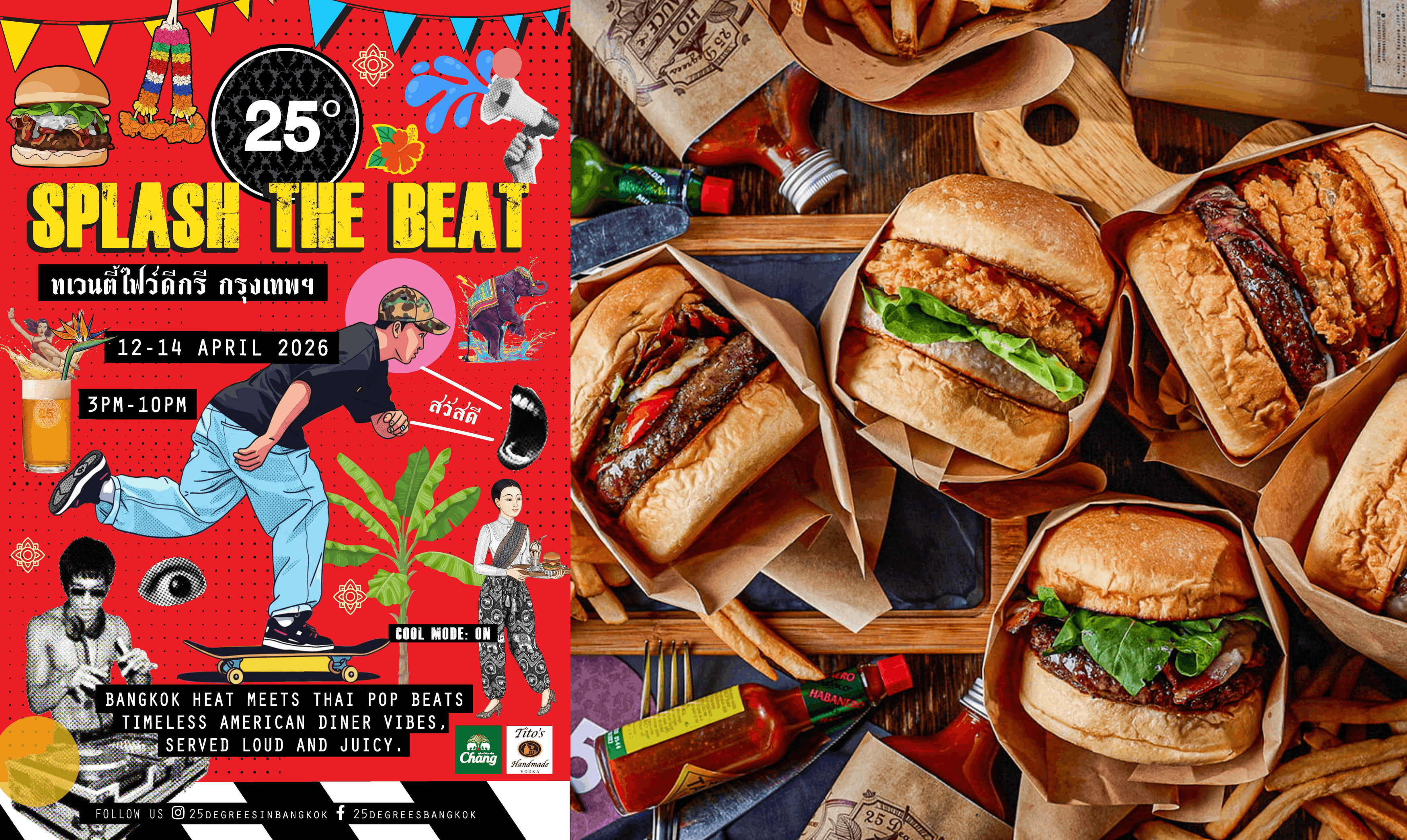 This Songkran, 25 Degrees Bangkok turns up the heat with Splash the Beat — where Bangkok’s street energy collides with bold American diner vibes.