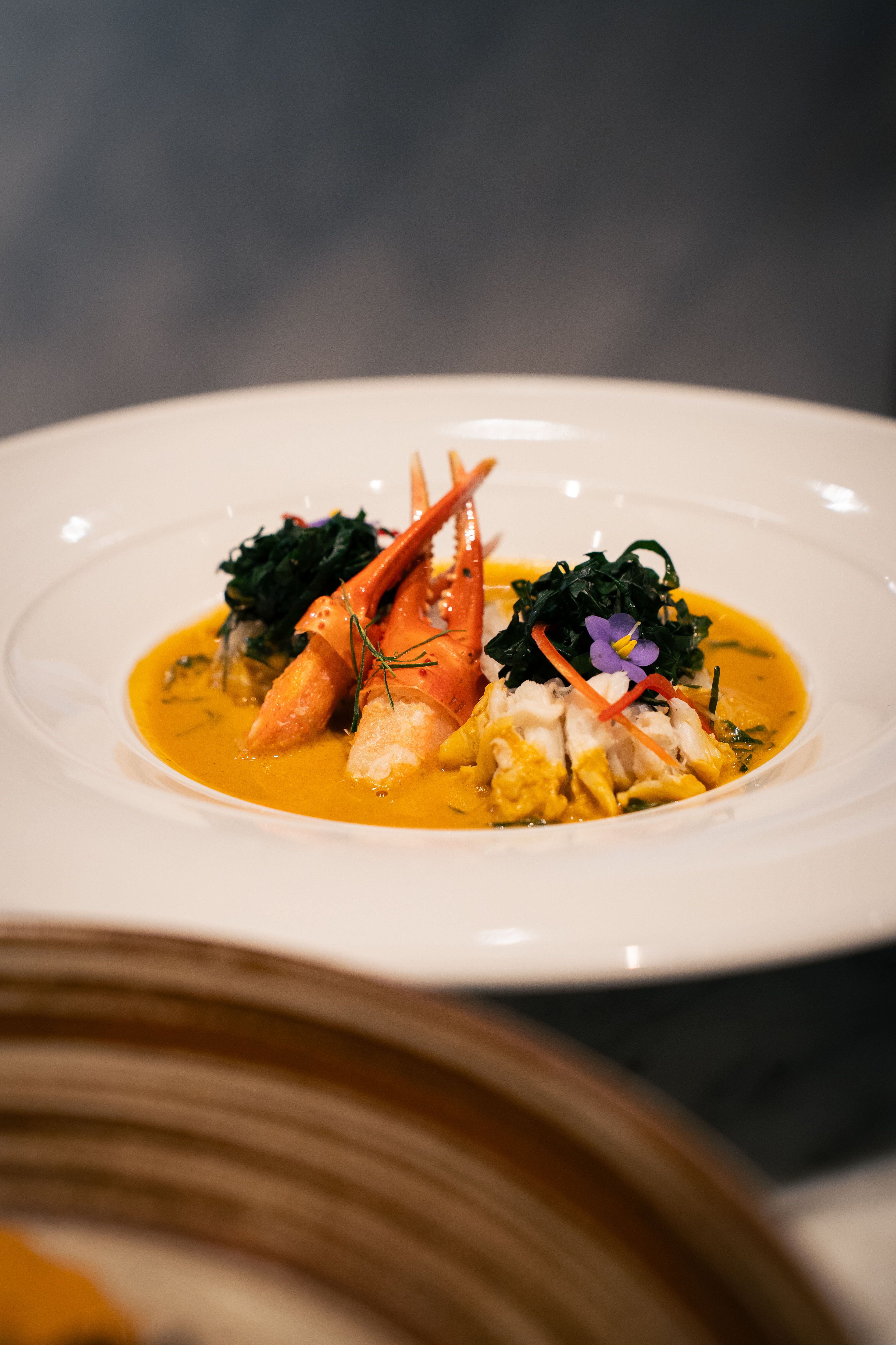 Chef Manachai’s Southern Thai Blue Crab Curry, a tribute to his mentor Ajarn Srisamorn, harmonizes traditional southern spice with contemporary finesse.