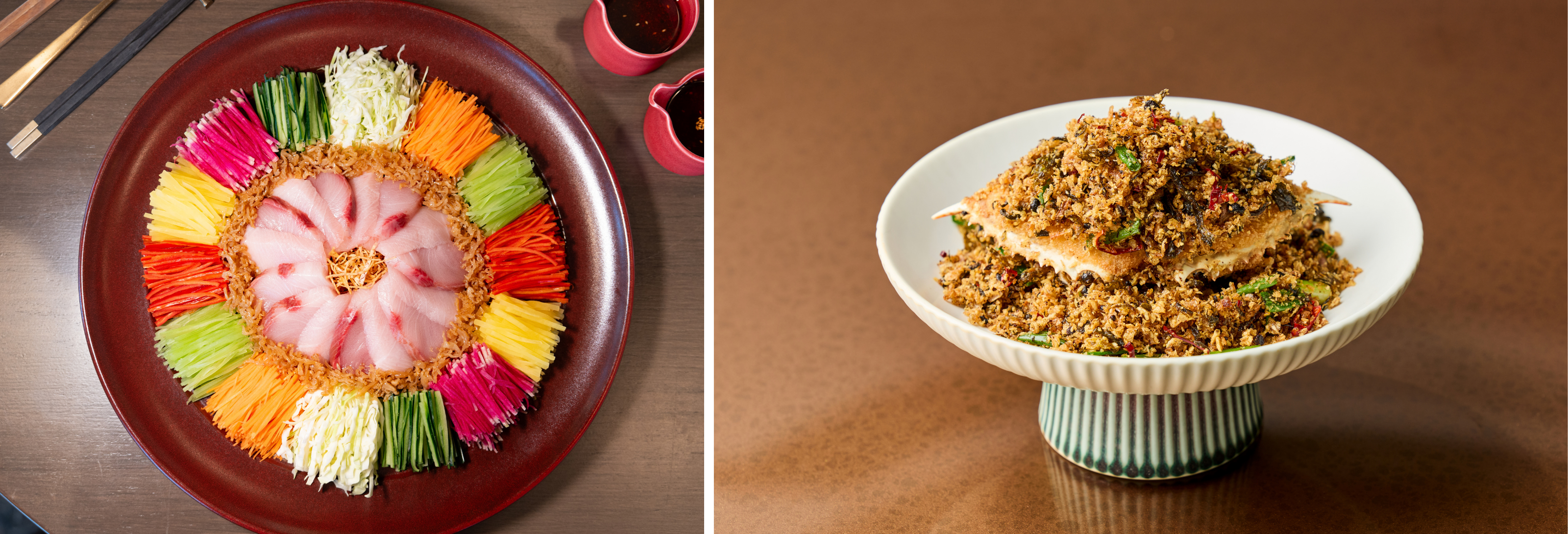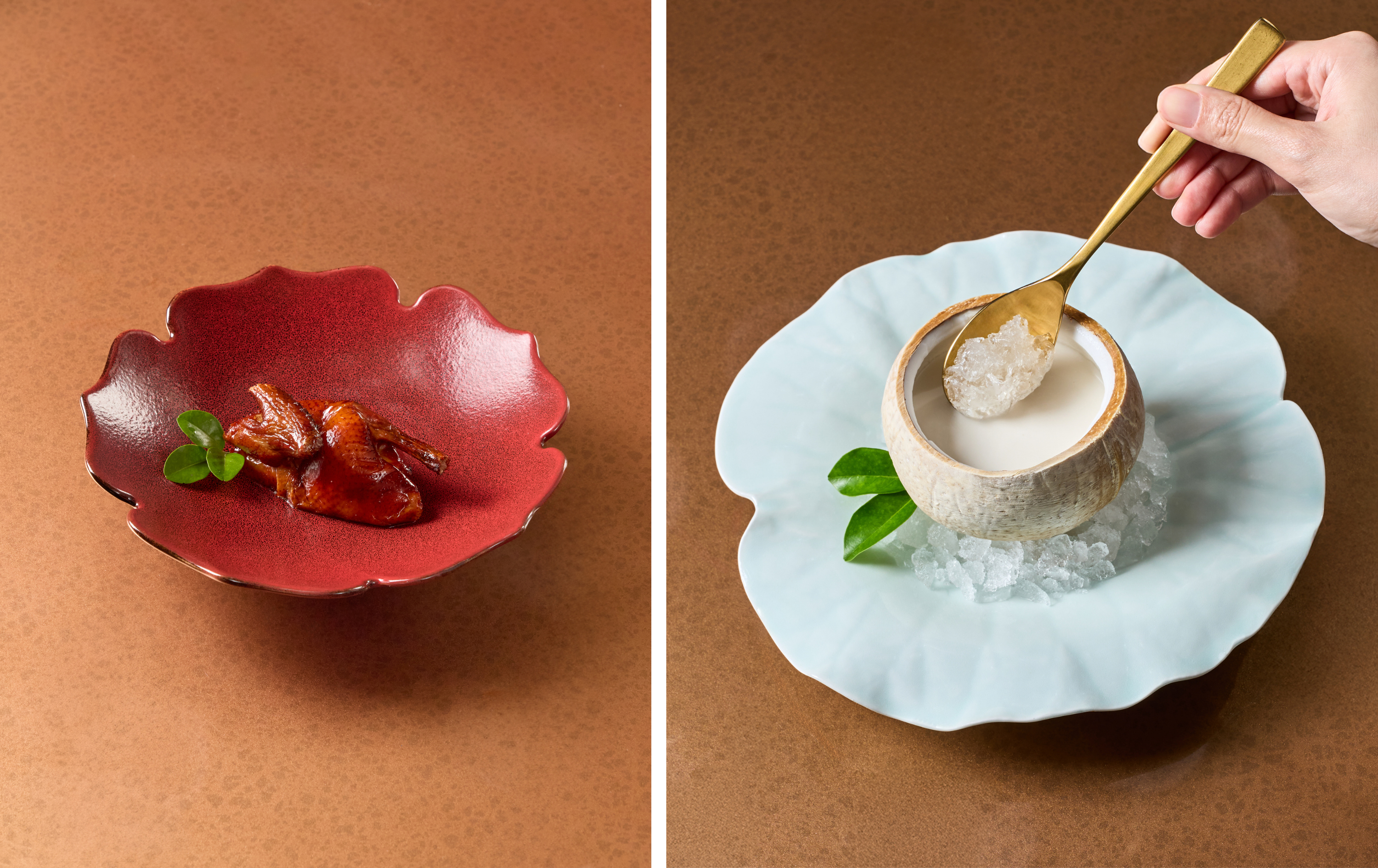The Crispy Pigeon is presented as an auspicious messenger of a fulfilled life, while the Stir-Fried Seasonal Vegetables with Ginger Sauce and Sakura Ebi and the Steamed Glutinous Rice in Lotus Leaf with River Prawn bring a touch of joy—as the word for prawn evokes the sound of laughter, ensuring a year filled with happiness. The banquet concludes with the Double Boiled Bird’s Nest with Chilled Coconut Milk, a revered ‘food of life’ that promises radiant vitality.