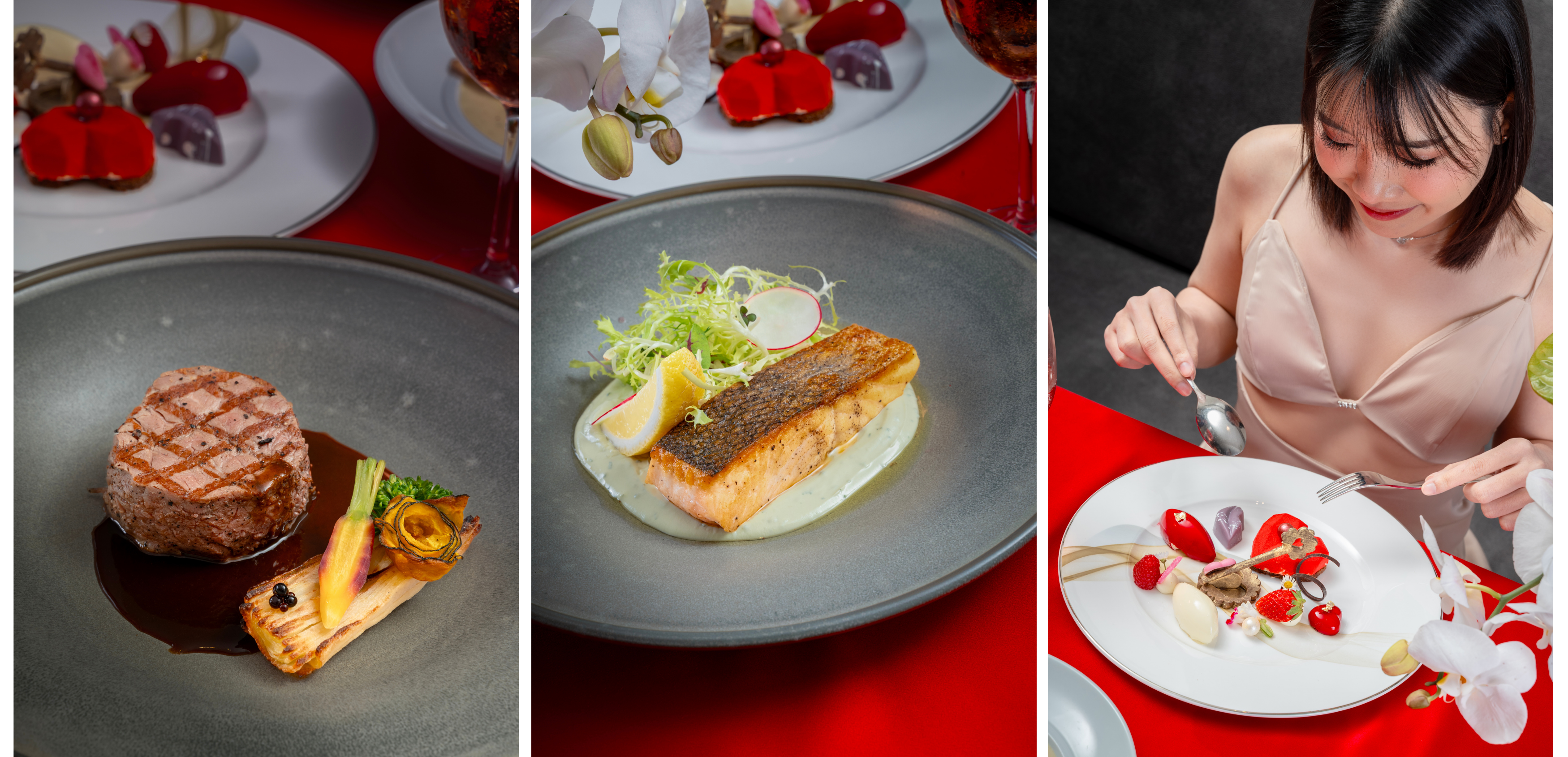 Curated exclusively for Valentine’s Day, the specially crafted 4-course Western set menu begins with an elegant Amuse-Bouche of Brie Crostini and Feta Crostini, followed by Love-Infused Starters featuring Smoked Salmon delicately paired with yuzu gel, citrus segments, mentaiko roe, and tobiko.