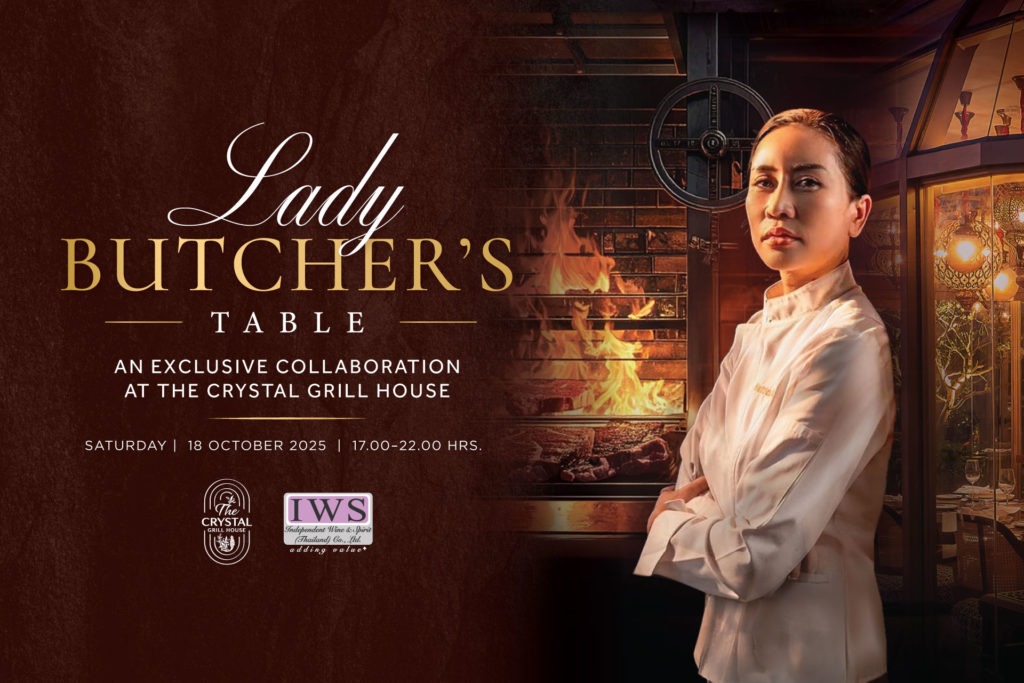 Bangkok, Thailand, September 15, 2025The Crystal Grill House, the glamorous glasshouse restaurant on the banks of Bangkok’s Chao Phraya River, is delighted to welcome the Lady Butcher (aka Chef Natt, Natsasi Noo-in), Thailand’s celebrated maestro of meat, for an exclusive six-course culinary journey and wine pairing on Saturday, October 18th, 2025.