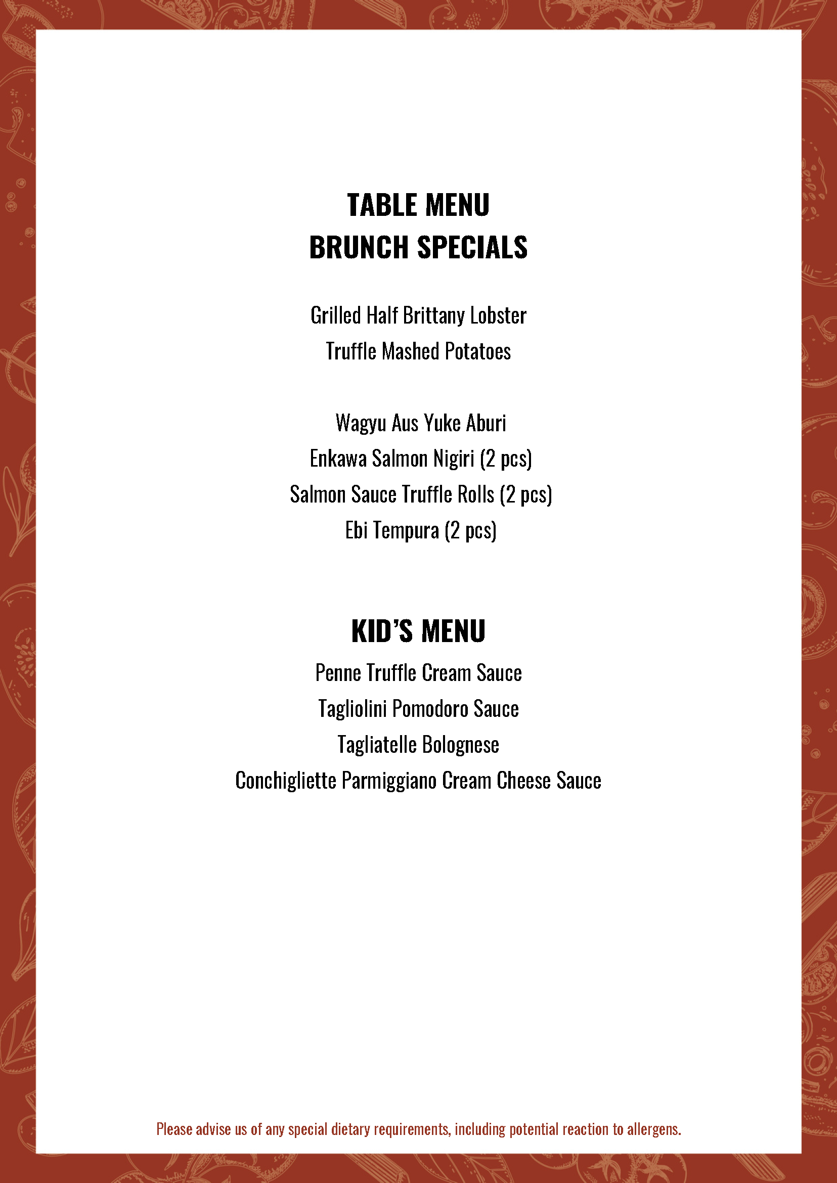 2 NOV - Sunday Brunch “Taste of the Alps” at Bella Sera