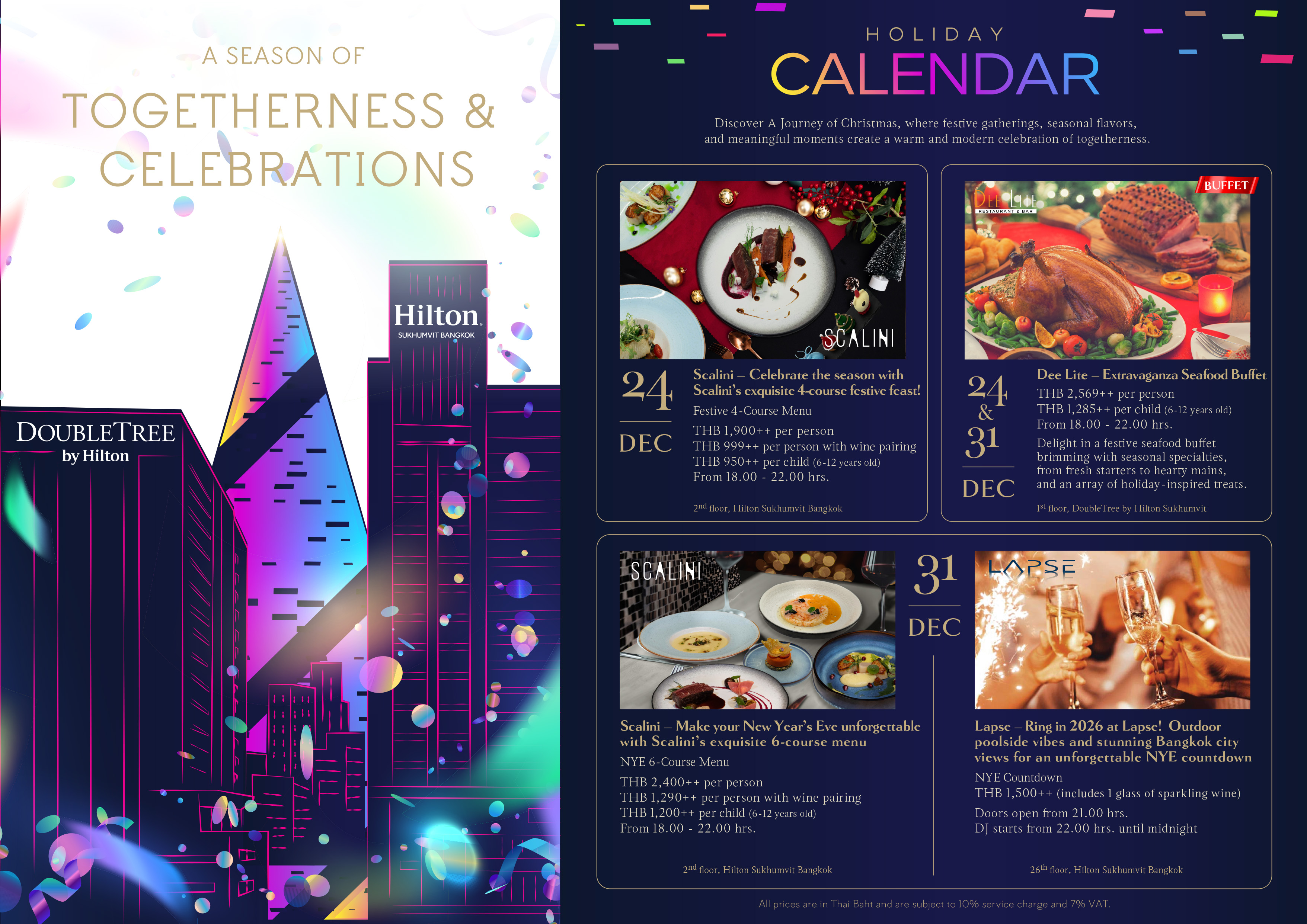 - Sweet Treats from the Oven: Classic holiday bakes like Panettone, Christmas Stollen, and Choco Yule Log are available at Mondo, starting from THB 850++ per piece