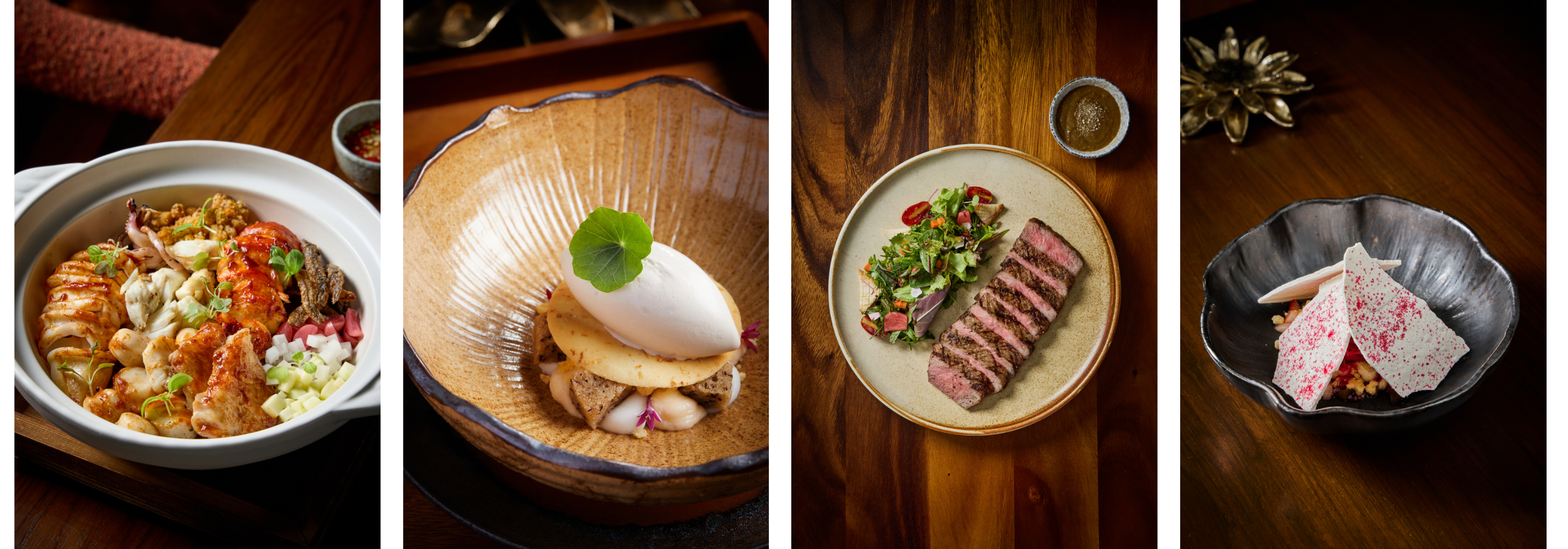The indulgence continues with Unlimited Opulent Delights, an exclusive selection of premium dishes served throughout the evening in addition to the ten-course menu. These luxurious additions include delicate Crab Salad with Sriracha mayo and caviar, superbly Grilled Thai Tajima Wagyu Ribeye Steak with marbling score MB 11, Seared Scallop with aromatic galangal espuma and caviar, succulent Grilled River Prawns, and the beloved Thai Mango Sticky Rice.