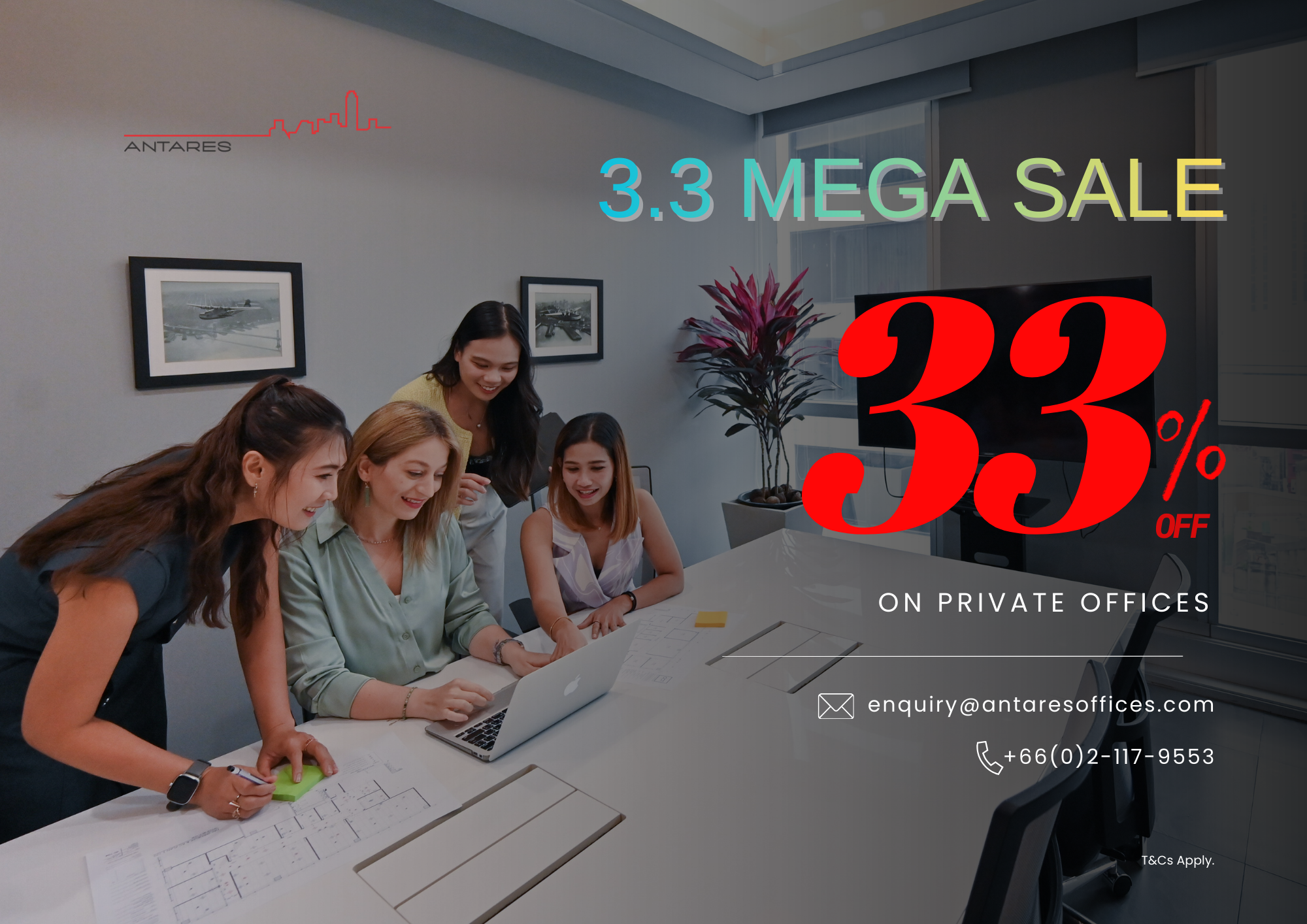 Enjoy 33% OFF your Private Office at Antares Serviced Offices.