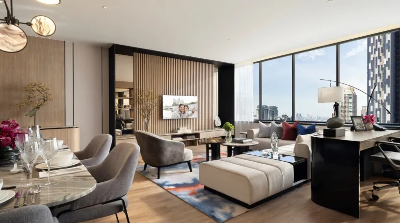 The Ascott Embassy Sathorn Bangkok features 393 luxurious deluxe rooms, studio apartments, one-bedroom apartments, and two-bedroom apartments, each elegantly designed with lavish amenities and advanced technology, including washer-dryer, fully equipped kitchenettes and exquisite furnishings. It is well suited for holidaymakers, families on extended stays, and relocating executives looking for a comfortable and elegant experience in a homely environment. Onsite facilities include the 38th-floor sky terrace with 360 degree panoramic view of Bangkok, an infinity swimming pool, a state-of-the-art gymnasium, children’s playroom, steam and sauna rooms, and residents’ lounge that can be used by guests during their stay. The property is also equipped to welcome meeting and convention guests onsite and boasts a speciality restaurant and all-day dining restaurant providing room service as well as exquisite dining-in experience on Level 37.