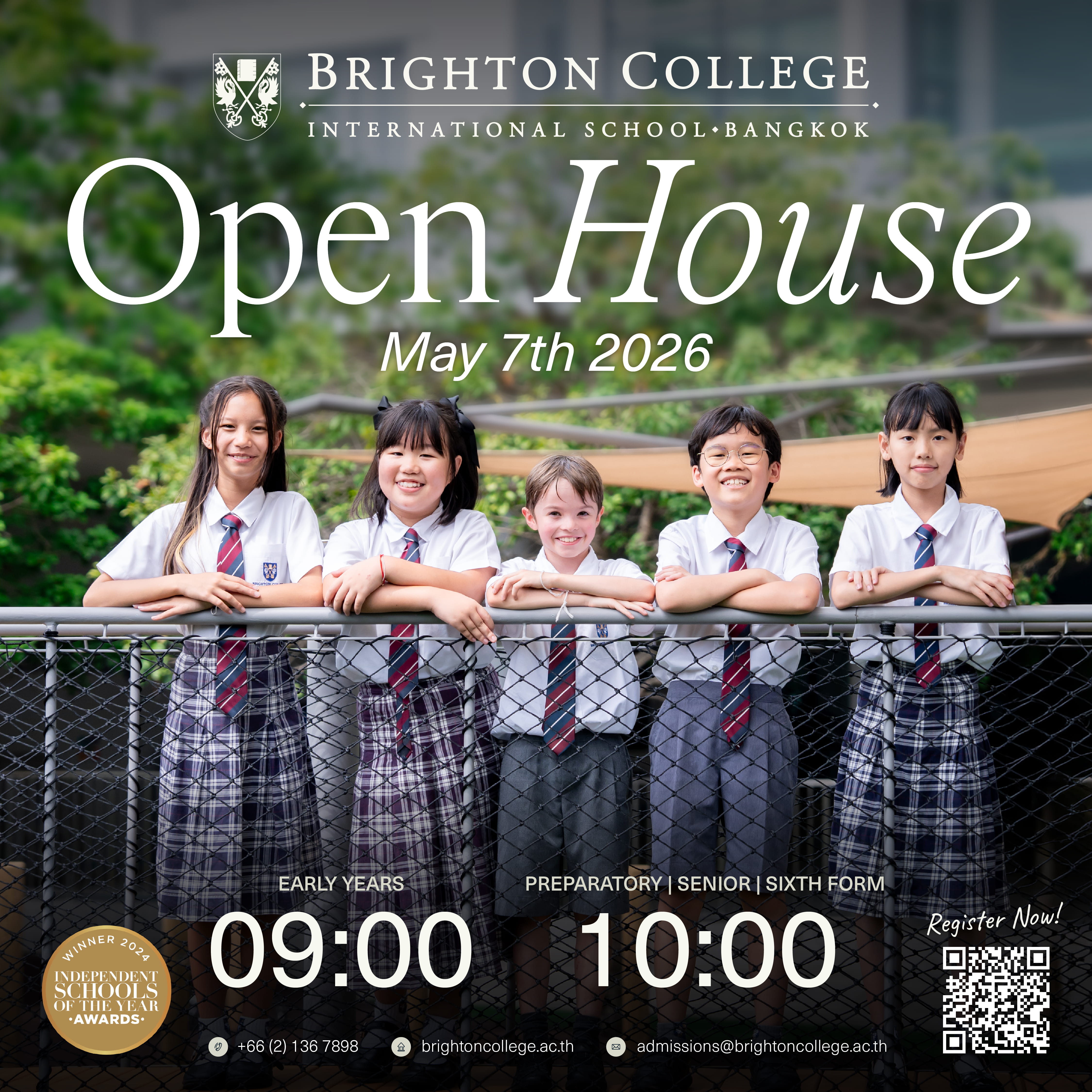 Join Brighton College Bangkok at their next Open House on May 7th, 2026. For more information, please contact admissions@brightoncollege.ac.th