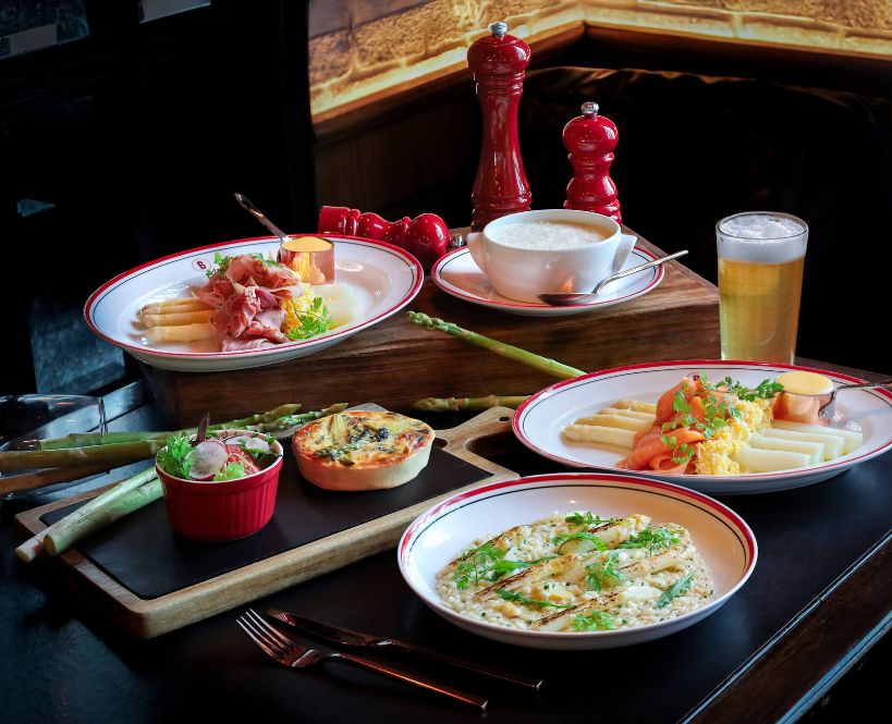 Savor the flavors of asparagus season with a curated menu by Chef Lars and his team. From creamy Asparagus Soup to Grilled White & Green Asparagus with Lardon, each dish celebrates the freshness of this seasonal ingredient. Enjoy White Asparagus Salad with Khao Yai Chicken, or classic Flemish-style Asparagus served with Paris Ham, Norwegian Smoked Salmon, or Australian Wagyu Tenderloin.