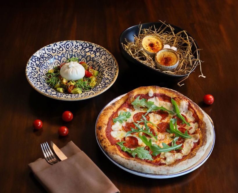 Experience the best of Italy with our curated lunch menu, featuring Spicy Salami and Nduja Bruschettone, Clam Tagliolini, Grilled Red Snapper with Spinach and Garlic Saffron Sauce, and Grilled Italian Sausage. Conclude your meal with classic Tiramisu, Apple Tart, or other delightful desserts for the perfect finish.