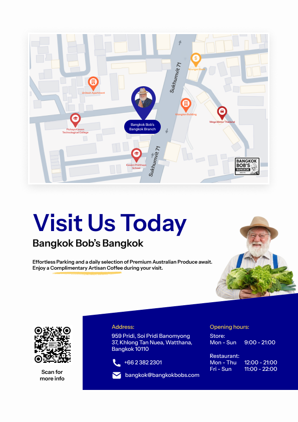 Visit us: Sukhumvit 71 OR Bangkok Bob's Phuket Branch (Si Sunthron) | Open Daily 9:00 - 21:00