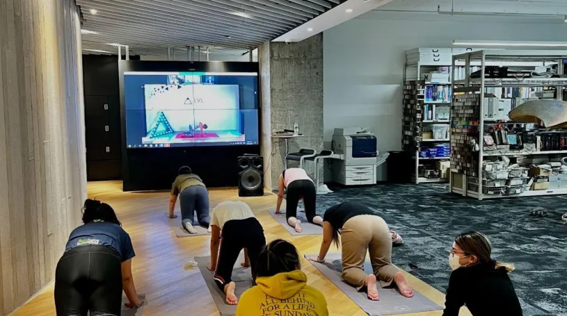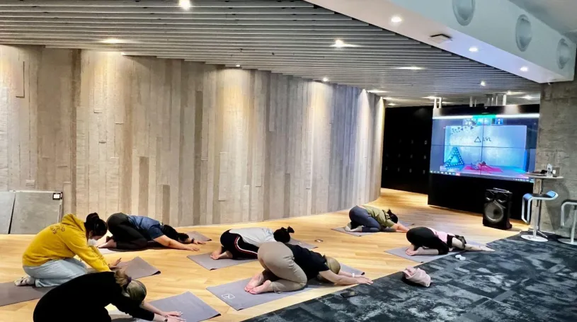 In a great example of collaboration between fellow Austcham members,  LVL Wellbeing hosted a trial live streaming yoga stretch session, direct from their content studio in Dubai into the offices of global design company DWP  in Sathorn.