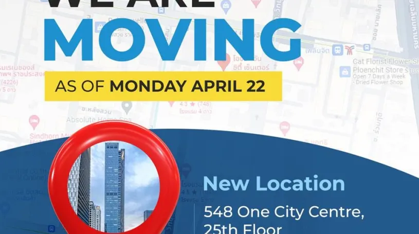Effective April 22nd, we will be relocating our office to One City Centre, located right by BTS Ploenchit. The beautiful new space we will occupy represents an exciting period of growth and change for us. We look forward to welcoming you to visit our brand-new office very soon! π