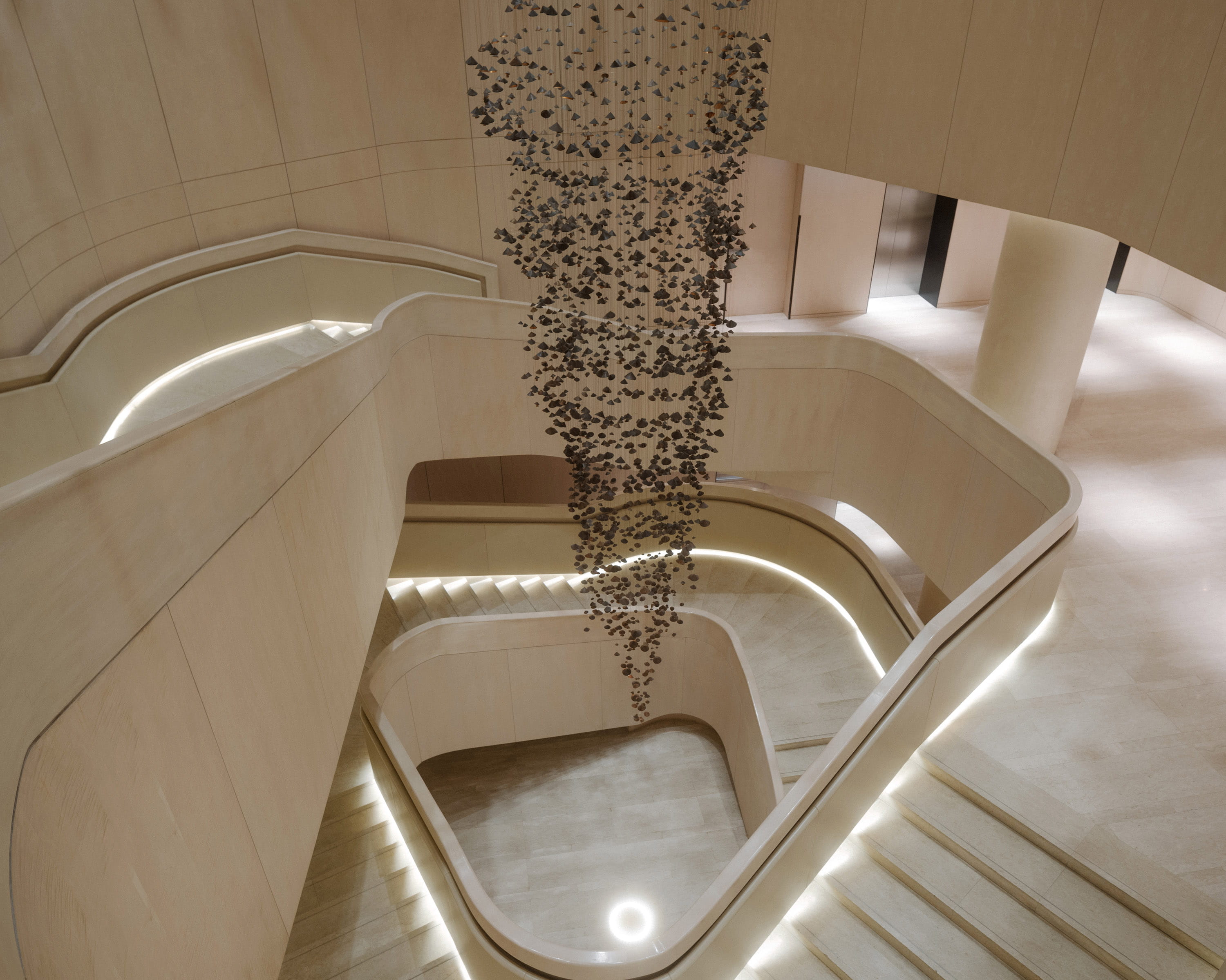 To deepen this experience, guests are invited to embark on a complimentary in‑house art tour, guided by the hotel’s knowledgeable art curating team. The journey unveils an extraordinary collection of works, including Hirotoshi Sawada’s Pagoda Mirage, a suspended copper installation inspired by the iconic pagoda of Wat Arun, alongside his fluid ceiling installation Naga, which gracefully flows through the 9th‑floor veranda into the Living Room and Embassy Room La Marina.