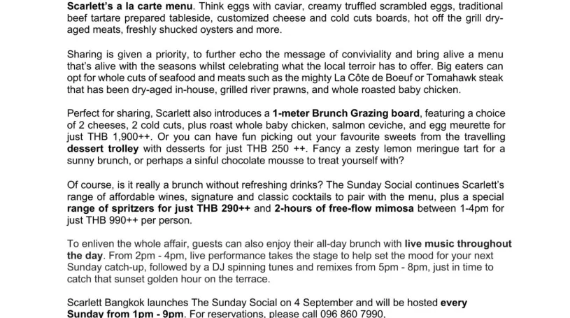 Pullman Bangkok Hotel G - Launches The Sunday Social Brunch