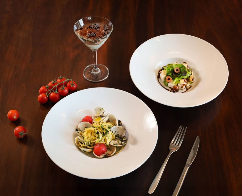 Experience the best of Italy with our curated lunch menu, featuring Spicy Salami and Nduja Bruschettone, Clam Tagliolini, Grilled Red Snapper with Spinach and Garlic Saffron Sauce, and Grilled Italian Sausage. Conclude your meal with classic Tiramisu, Apple Tart, or other delightful desserts for the perfect finish.