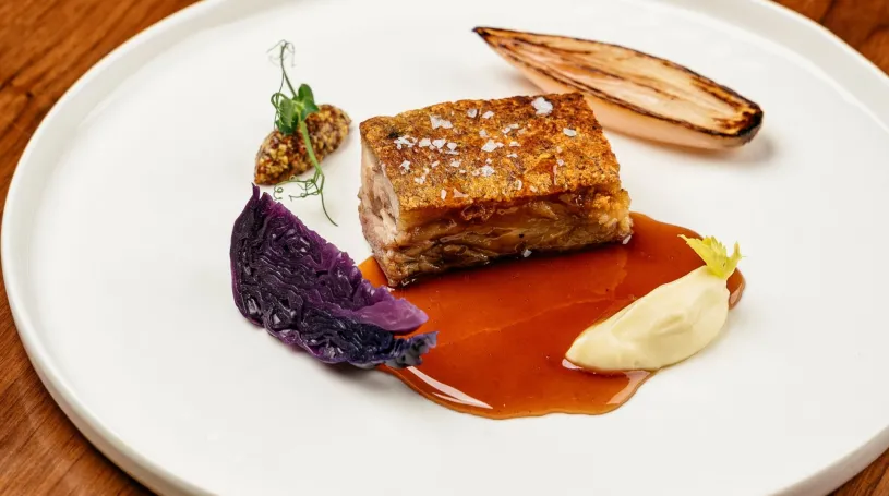 Signature main courses present premium produce from land and sea, including Halibut, pan-fried to perfection and served with purple corn, butterfly peas, Curaçao, Romanesco and snow peas, and Pancetta, Italian cured pork belly, which is slow-cooked overnight until wonderfully soft and tender, then