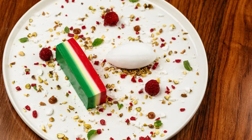 Naturally, every meal can end on a sweet note with a choice of classic Italian desserts with an innovative twist: Tiramisu served in a smoking moka pot. Panna Cotta presented in the colors of the Italian flag, with green pistachio paste, red strawberry, white meringue and lemon ice cream.