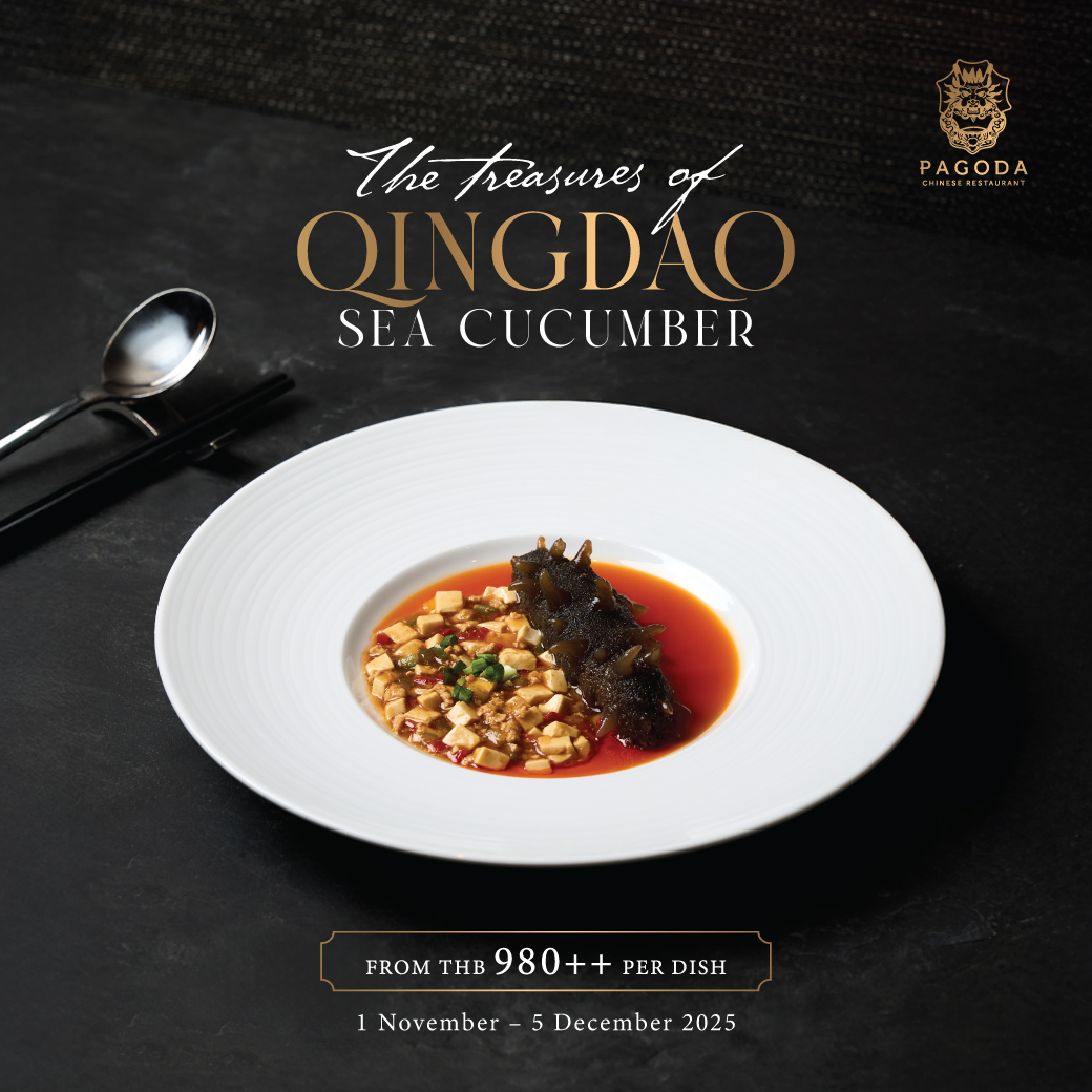 The Qingdao sea cucumber promotion is available for lunch (12:00 – 14:30 hrs) and dinner (18:00 – 22:00 hrs) from November 1st to December 5th, 2025. Prices start from THB 980++ per dish.