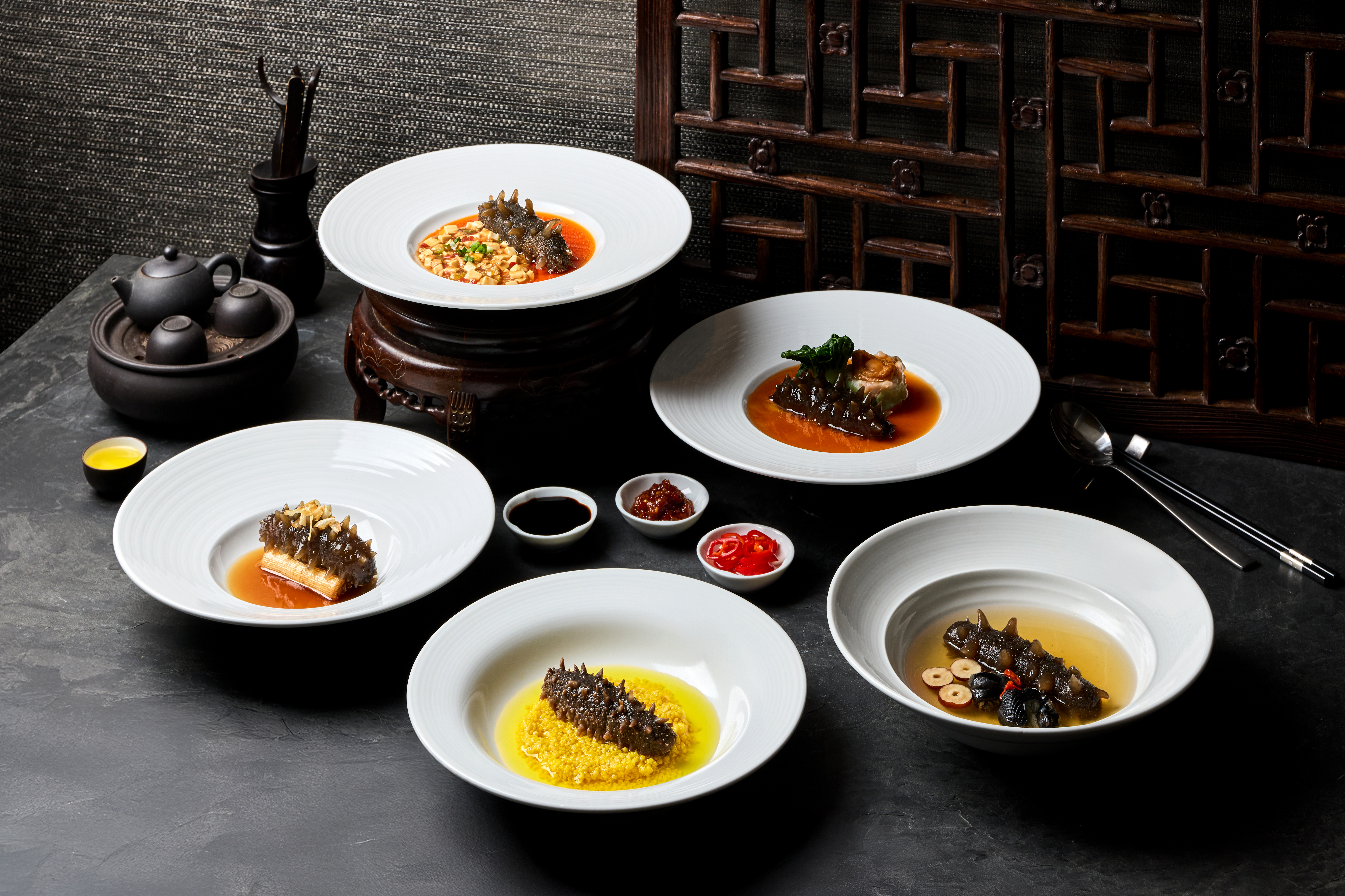 - Braised Sea Cucumber with Sichuan Mapo Tofu: Inspired by the bold flavors of southwest China, this fusion of spicy tofu and tender sea cucumber is fiery yet refined.