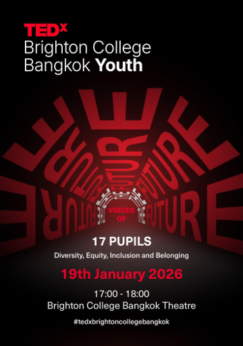 TEDxBrightonCollegeBangkokYouth event was named ‘Voices of the Future’ and at Brighton College Bangkok, pupils are encouraged to think deeply about the future and their role in it. The theme for the event was centred on striving towards a global future that celebrates diversity, is equitable and is inclusive so that everyone feels a deep sense of belonging and justice. Despite their youth, the pupil speakers wanted to showcase their mission and passion for Diversity, Equity, and Inclusion because they want to ensure every individual in their community feels truly valued and empowered to be happy and successful.