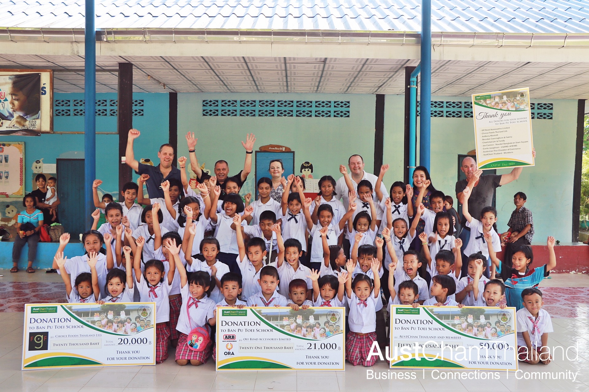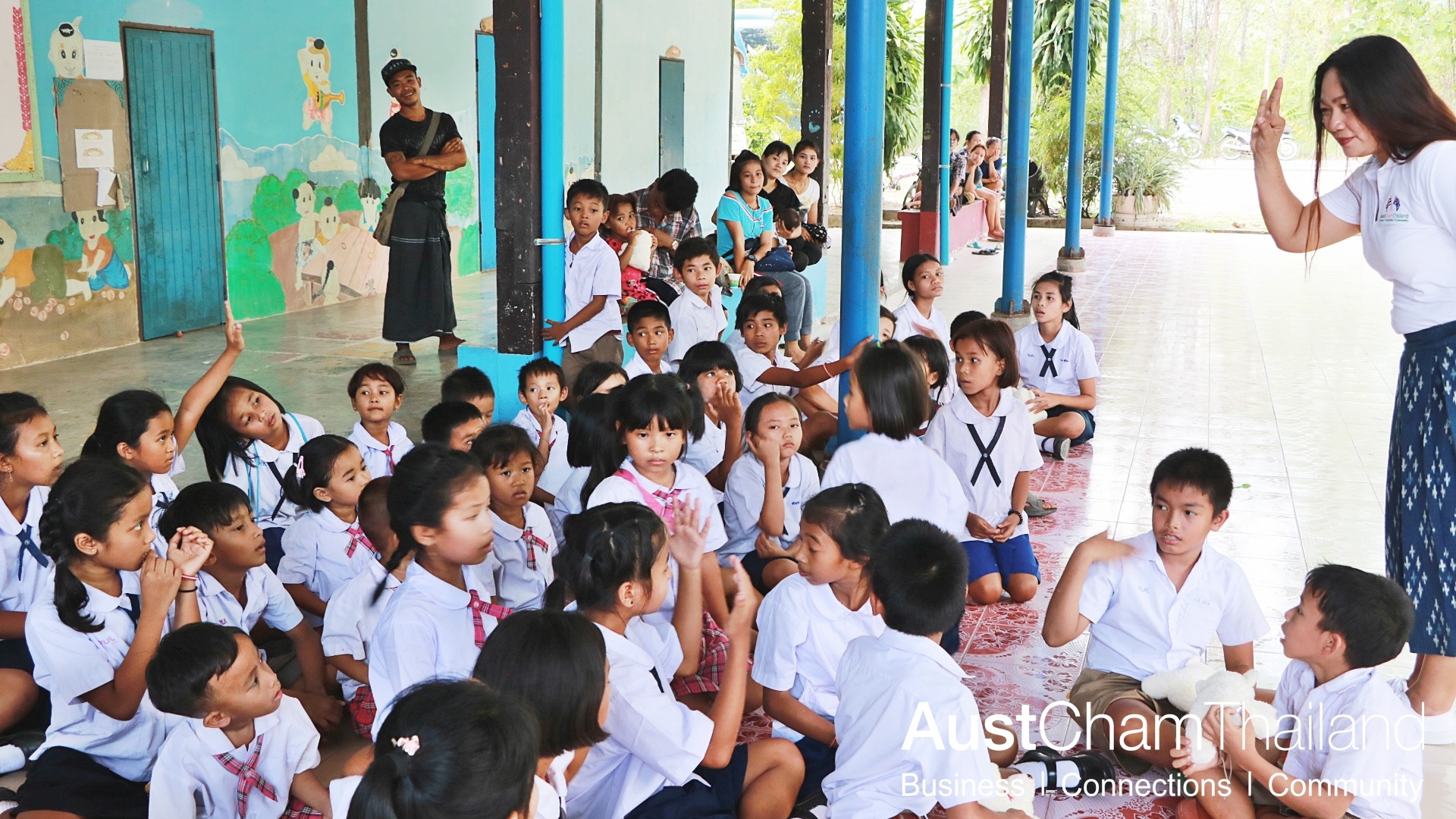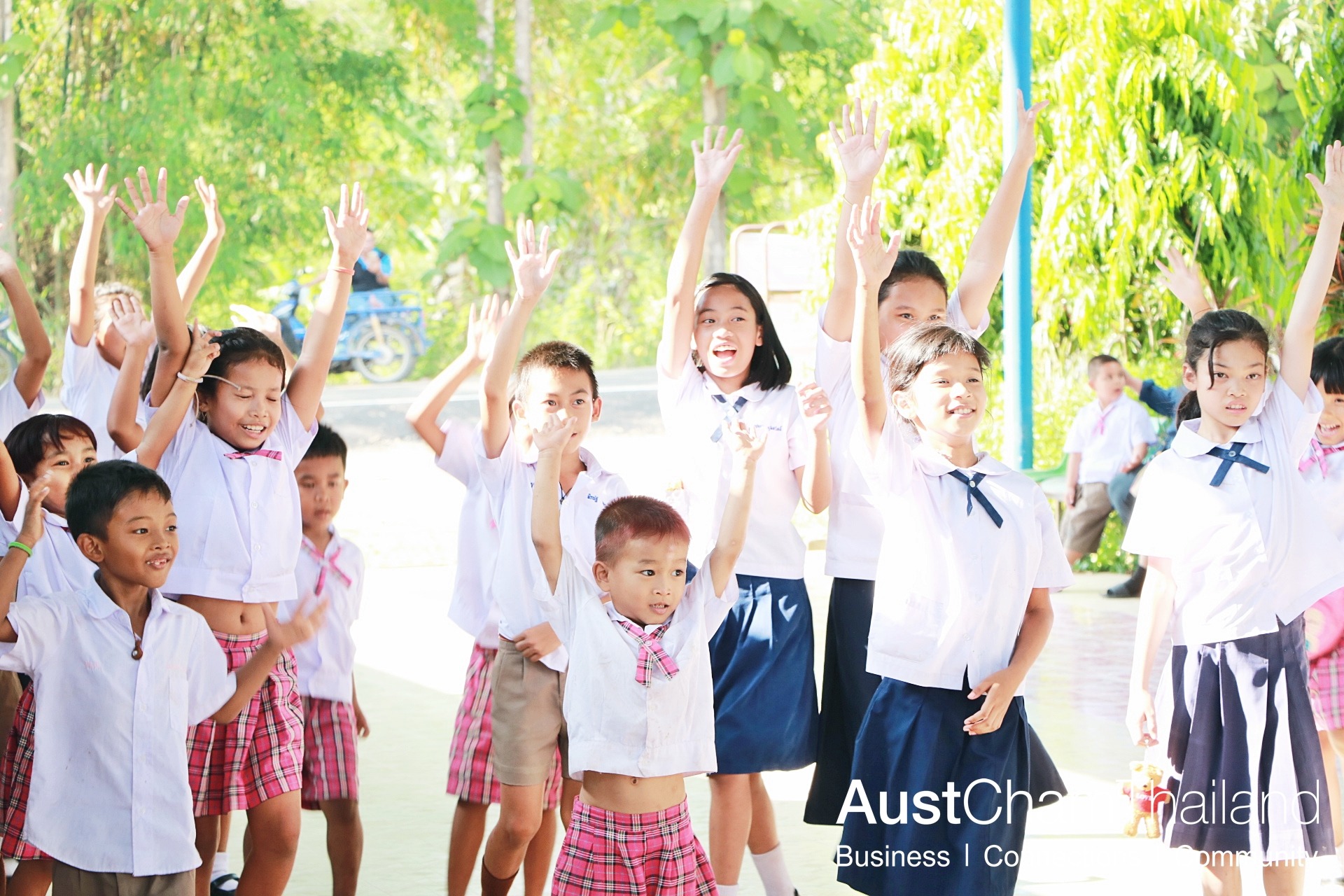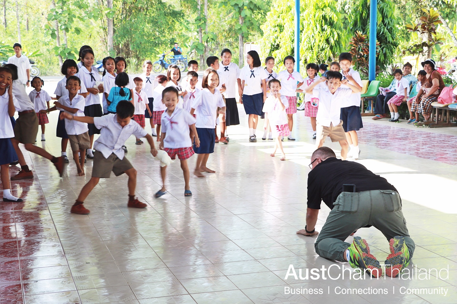 Additionally, on the day prior to the Dawn service, the Australian-Thai Chamber of Commerce and the crews went to Ban Pu Toei School, a primary school near the Hellfire Pass Museum, to contribute something back to a community nearby in commemoration of ANZAC day. At the school, we donated various essential equipment, i.e., desks & chairs, second-hand computers, screen projector, stationeries, and dried foods like bags of rice, that would support a proper learning environment for the student. Apart from the donation, we also held several recreational activities together with the students. In this regards, we would like to thank all the donors and association for your kind support to the school and these future generations.