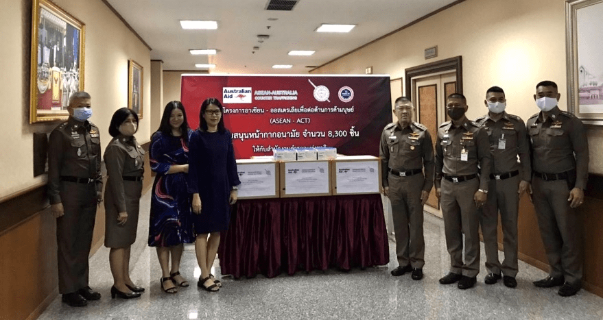 Pol. Lt. Gen Jaruwat Waisaya, Assistant Commission-General/ Director of Children, Women, Family Protection, and Anti-Trafficking in Persons Center said “The Anti-Trafficking in Persons Center, Royal Thai Police thanks ASEAN-ACT for its contribution of surgical masks so the police force can protect themselves in preventing and suppressing trafficking in persons. We want to extend our gratitude to the Australian Government for its continuing support to the Royal Thai Police to counter trafficking in persons.”