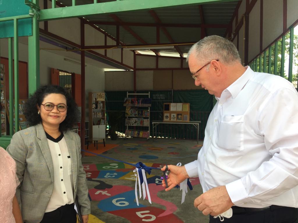 On 13 June, Ambassador McKinnon officially opened the library, together with Ms Jongkolkorn Singto, President of the Learning Management for Community Association and Mr Manop Pleawkleang, Vice President of the Foundation for Community Development. Thanks to Khun Jongkolkorn, Khun Manop and all the volunteers at the centre for giving us such a warm welcome!