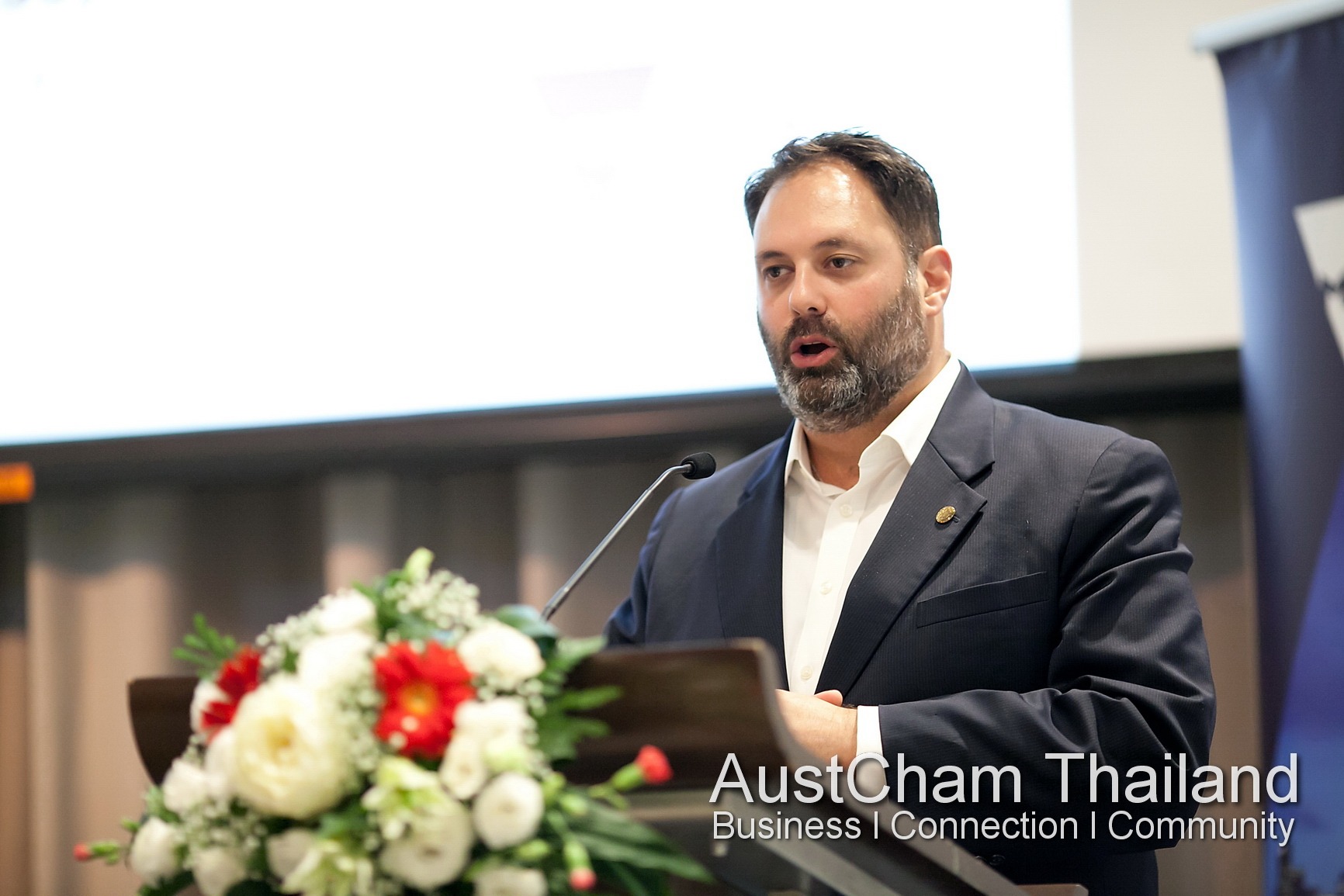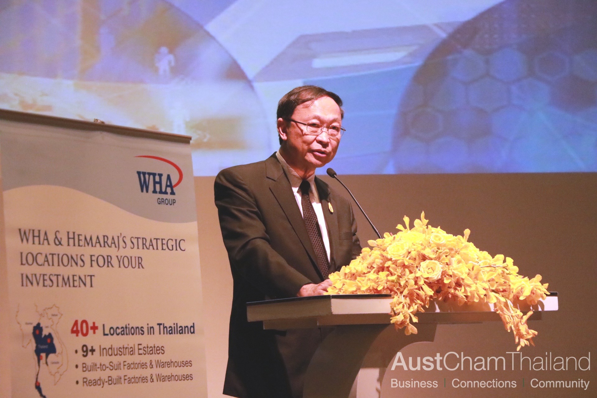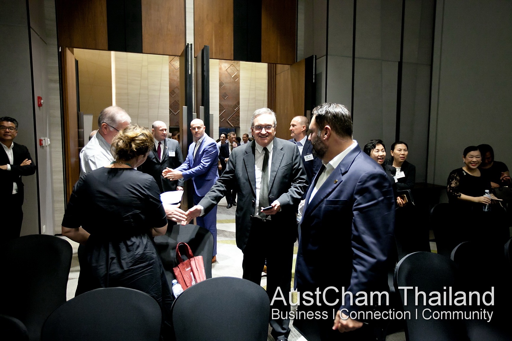 [gallery ids="https://www.austchamthailand.com/wp-content/uploads/2017/08/img_1478.jpg|,https://www.austchamthailand.com/wp-content/uploads/2017/08/img_68182.jpg|,https://www.austchamthailand.com/wp-content/uploads/2017/08/img_68462.jpg|" type="slideshow" orderby="rand"] On Wednesday 23 August 2017, The Australian-Thai Chamber of Commerce (AustCham) in collaboration with the American Chamber of Commerce in Thailand (AMCHAM), British Chamber of Commerce Thailand (BCCT), Franco-Thai Chamber of Commerce (FTCC), Netherlands-Thai Chamber of Commerce (NTCC) and the South African - Thai Chamber of Commerce (SATCC) had organised Joint Business Luncheon Meeting on “Plans for the Digital Economy Fund”. It was our honor to welcome H.E. Dr. Pichet Durongkaveroj, Minister of Digital Economy and Society, as well as the Alumni of the Year 2017, as the special guest speaker. Dr. Pichet had provided us with crucial updates on the Thai government’s “Digital Fund” being set up to support digital entrepreneurs and start-ups, with funding to be distributed beginning in September. Not to mention, the government’s mega project, the “Digital Park” planned for the Eastern Seaboard, and how AustCham members can access and acquire benefit from digital initiatives of Thai government. This event was held at SO Sofitel Bangkok.