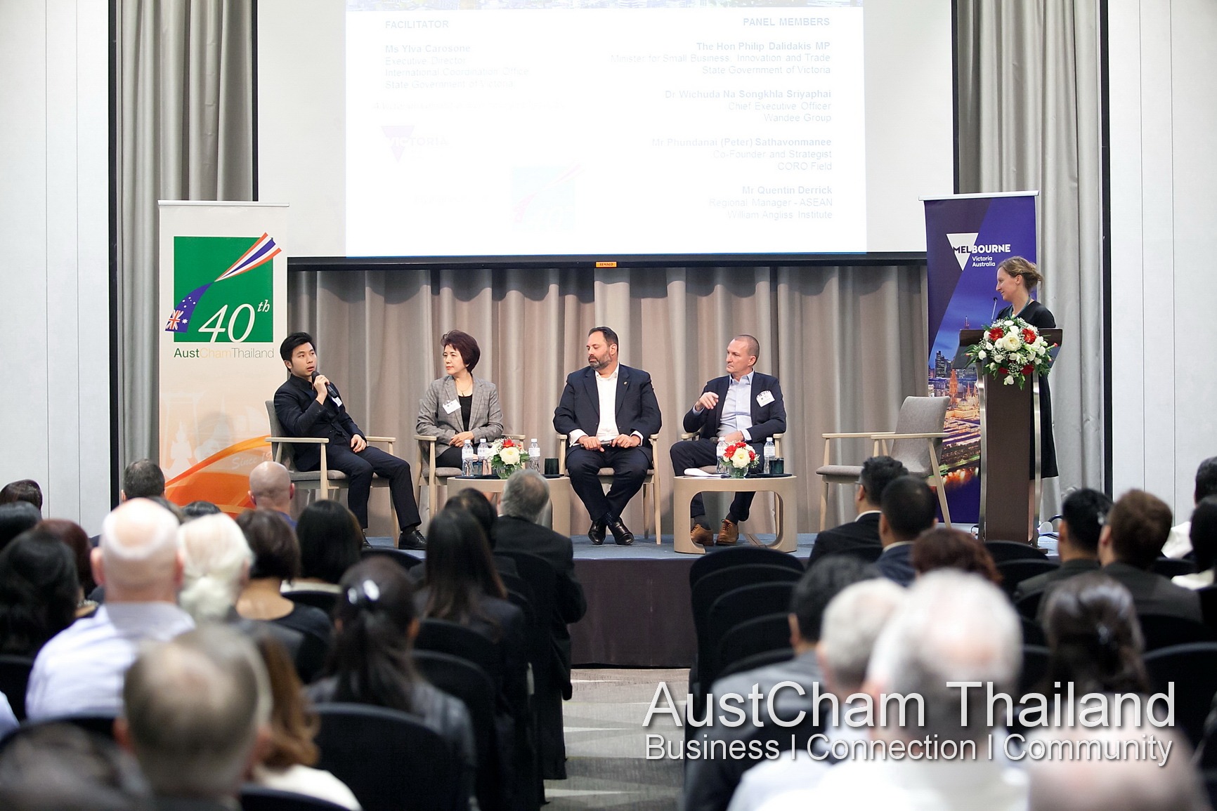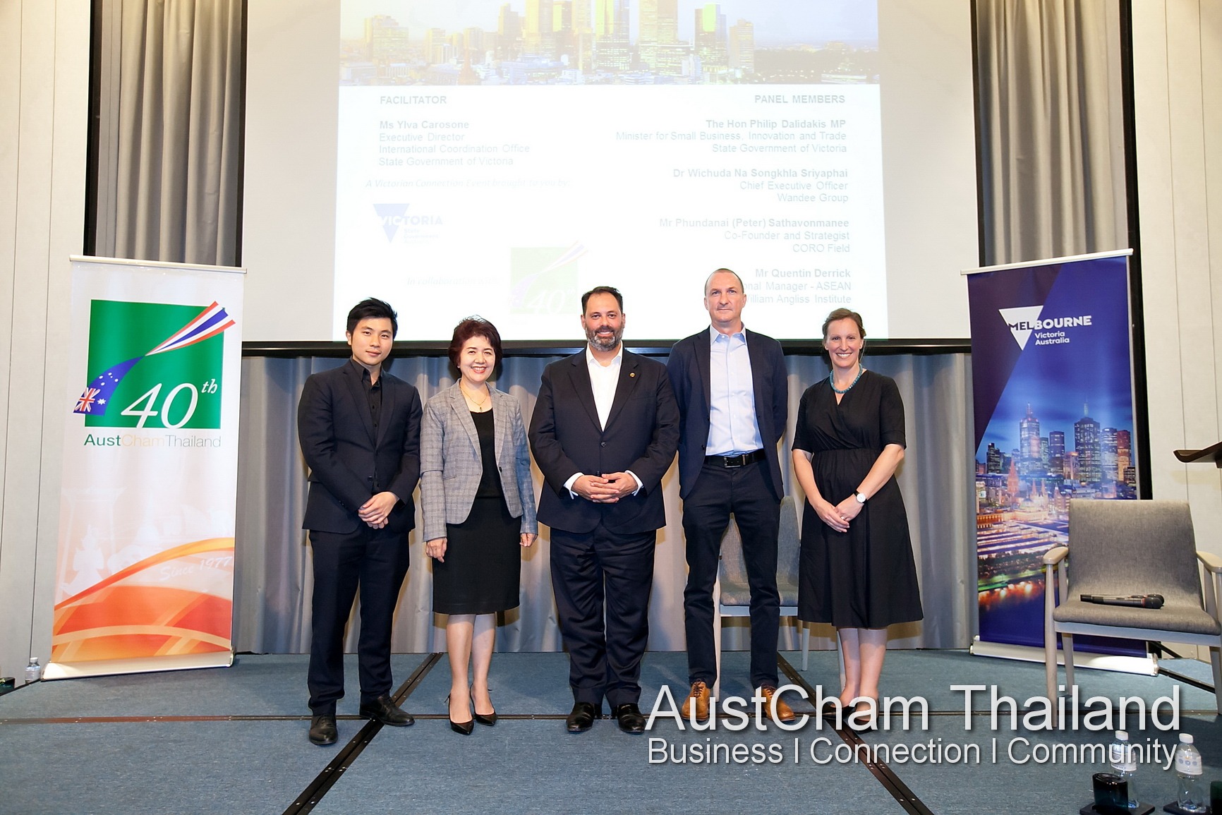 [gallery ids="https://www.austchamthailand.com/wp-content/uploads/2017/08/victorian_088.jpg|,https://www.austchamthailand.com/wp-content/uploads/2017/08/victorian_105.jpg|,https://www.austchamthailand.com/wp-content/uploads/2017/08/victorian_128.jpg|,https://www.austchamthailand.com/wp-content/uploads/2017/08/victorian_188.jpg|,https://www.austchamthailand.com/wp-content/uploads/2019/11/Screenshot_5.png|,|" type="slideshow"] On Thursday 17 August, AustCham welcomed a delegation from the Victorian State Government, to attend the Victorian Connection Events - Panel Forum and Networking. Led by the Hon Philip Dalidakis MP, Minister for Small Business, Innovation and Trade, Victoria Australia, the Panel Forum featured special guests from William Angliss Institute, Wandee Culinary Technological College & Wandee Media, and Coro Field. This event was held at Novotel Bangkok Sukhumvit 20.
