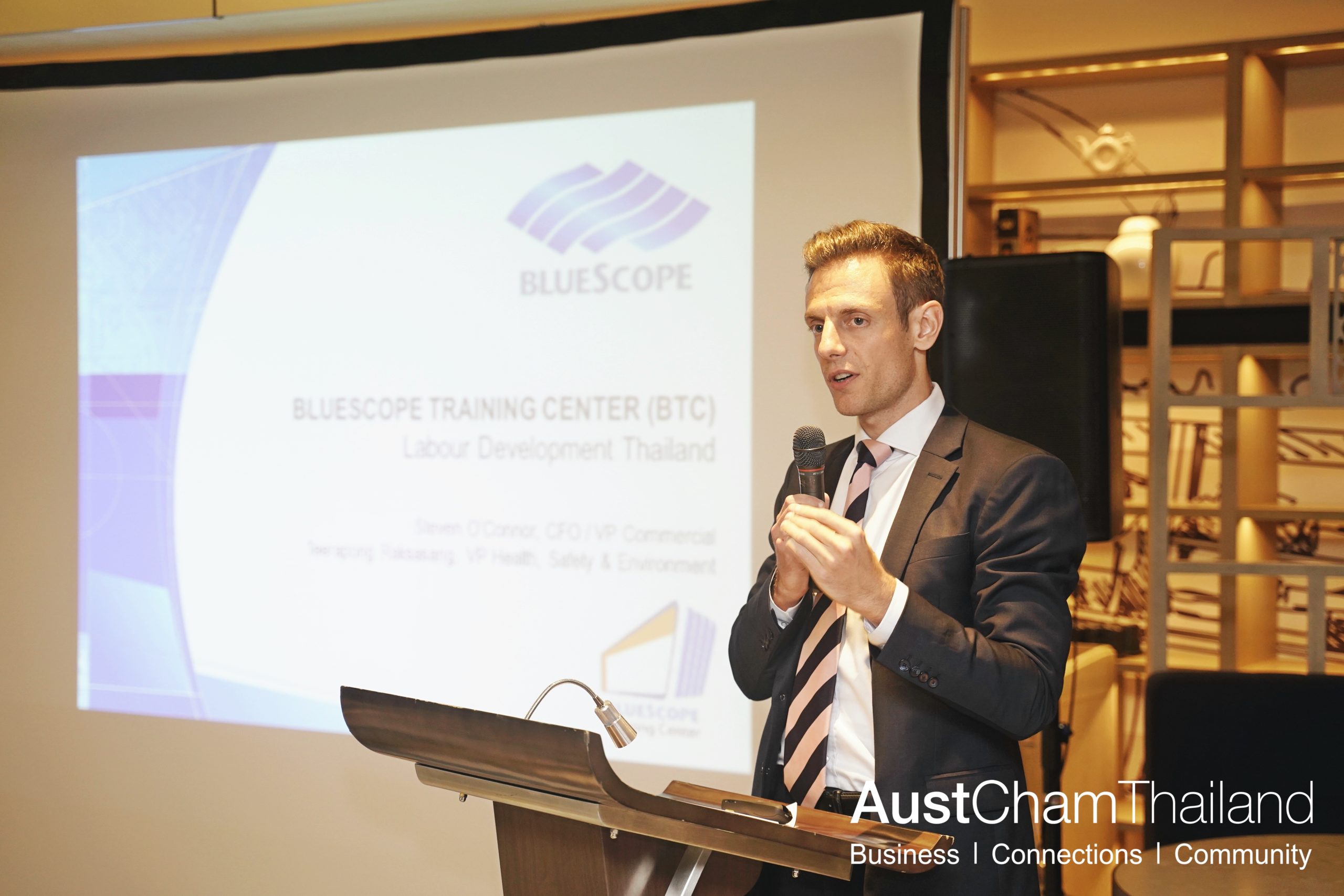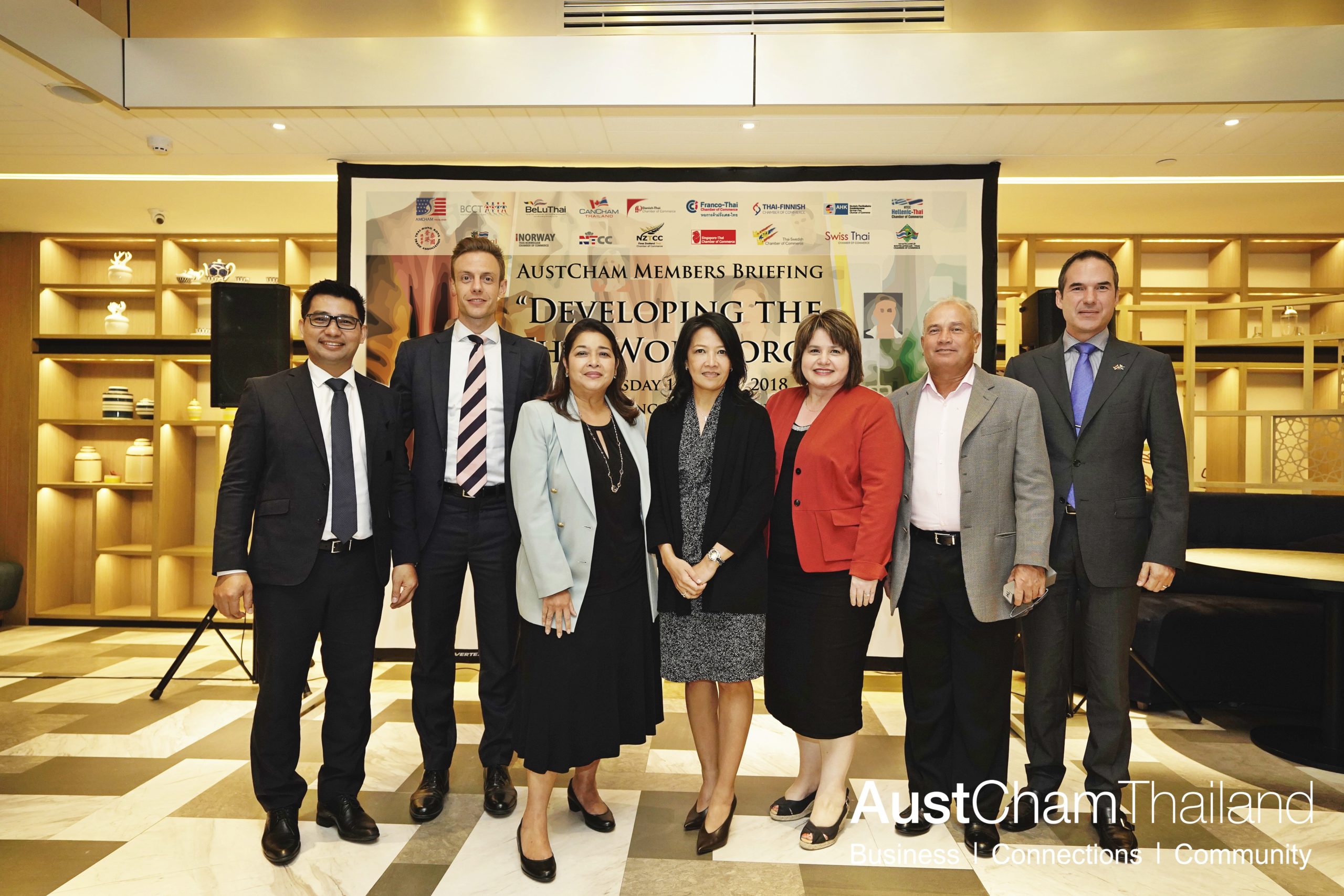 The Australian-Thai Chamber of Commerce, together with all Thailand Chambers, invited members to attend a Members Briefing on “Developing the Thai Workforce”, featuring presentations from leading Australian companies Bluescope and ANCA. One of the most important issues across all industries in Thailand is the lack of skilled workers, and the need to improve skill levels either in the early stages or even before employees enter the workforce. To meet the challenge head on, two Australian companies have initiated programs that are aimed at developing their workforce through agreements with Australian & Thai education institutes. In this session, they shared their stories and experiences with a view to helping other companies accomplish the same goals. Austrade was also on hand to explain how companies can connect with Australian Education Institutes.