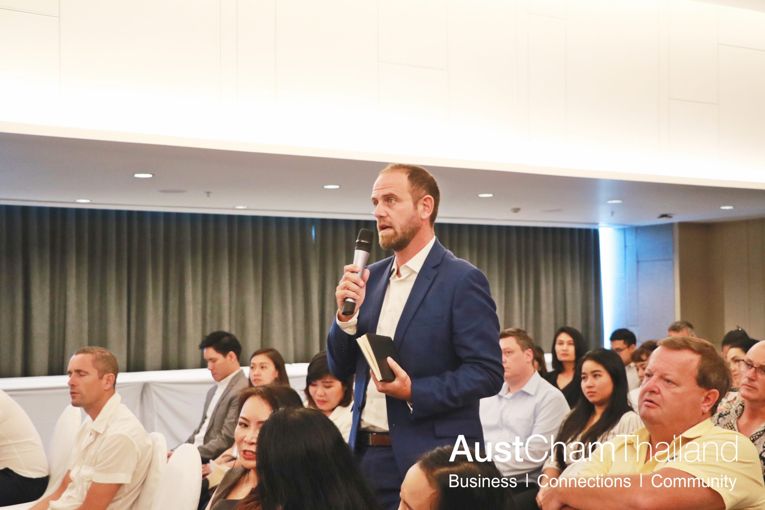 AustCham President Brenton Mauriello attended the signing of the blessing book on the auspicious occasion of Her Majesty Queen Sirikit of the King Rama IX's Birthday Anniversary. AustCham Vice President, Charles Wrightman attended the signing of the blessing book on the auspicious occasion of His Majesty King Rama X. AustCham Past President, Leigh Scott-Kemmis attended recording session of the blessing on the auspicious occasion of Her Majesty Queen Sirikit of the King Rama IX’s Birthday Anniversary.
