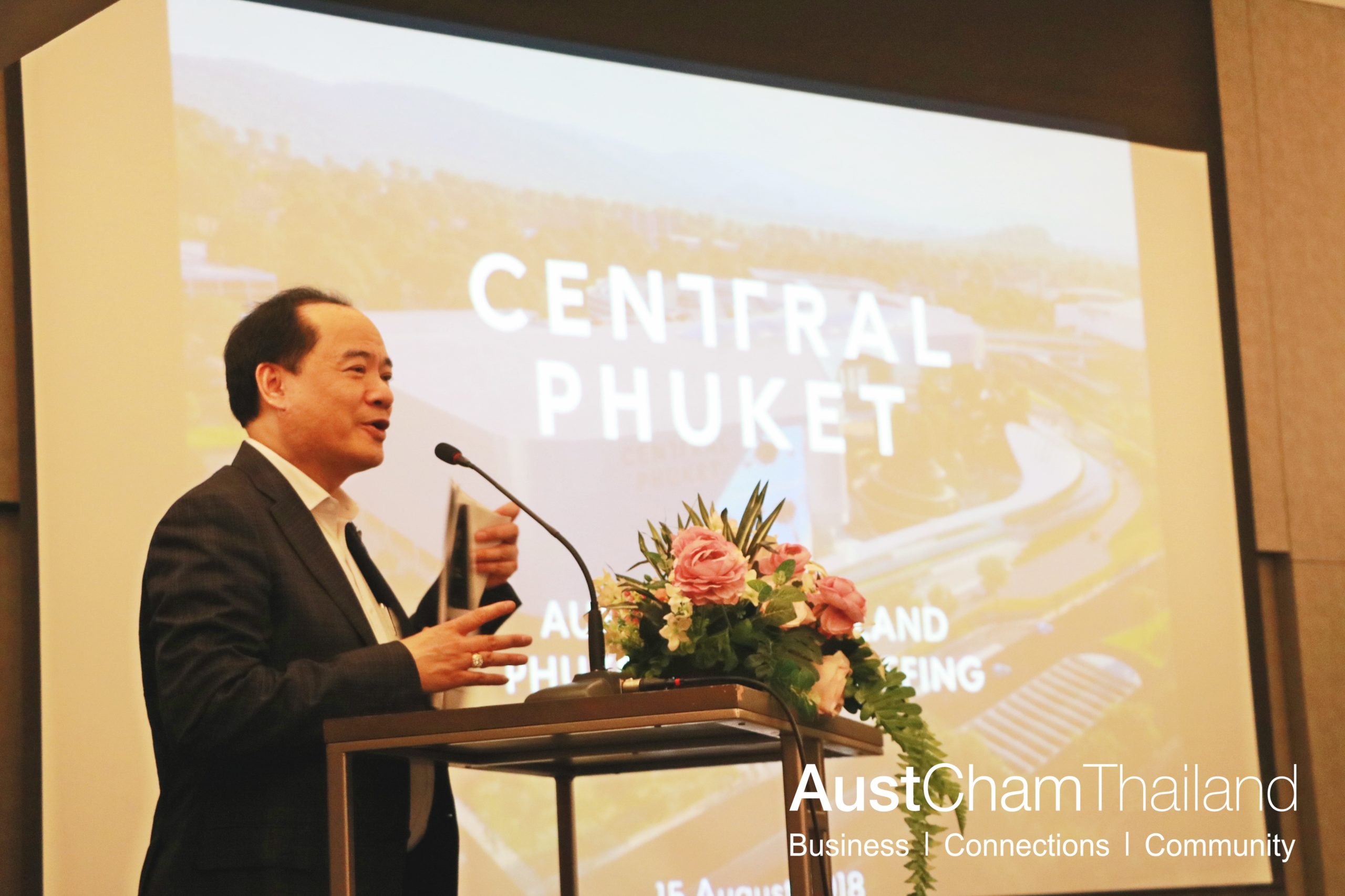 The Australian-Thai Chamber of Commerce (AustCham), in collaboration with Partner Chambers, invited members and guests to join our Members Briefing on “Central’s Retail Developments and Opportunities in Phuket”, featuring a presentation from keynote speaker Khun Pakorn Partanapat, Chief Operating Officer of Central Pattana Public Company Limited, on Wednesday 15th August, 2018, at the Novotel Phuket Phokeethra. Khun Pakorn presented on Central Phuket’s new luxurious wing "Floresta" due to open 0n 10th September 2018, and what the expansion can mean for other businesses on the island. To see the Central Presentation, click here: https://www.austchamthailand.com/page-1860632