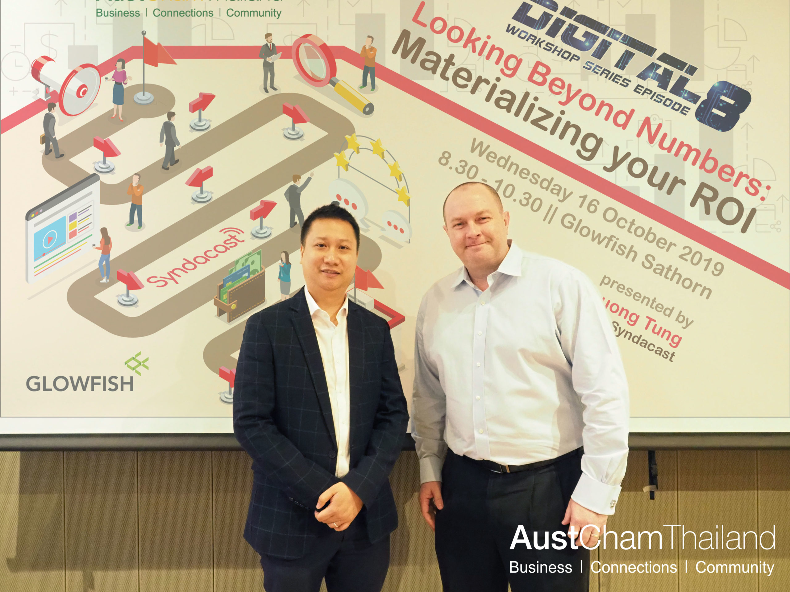 [gallery type="slideshow" columns="1" size="full" ids="https://www.austchamthailand.com/wp-content/uploads/2019/10/pa160091-scaled.jpg|"]On Wednesday 16 October 2019, AustCham Thailand held its 8th Episode of Digital Workshop Series on the topic of Looking Beyond Numbers: Materializing your ROI. Thank you to our trainer, Tom Nguyen Truong Tung, Managing Director of Syndacast, for taking his time to share with us a guideline to lift up our business performance with an efficient use of digital marketing tools. Not to mention, Glowfish Sathorn who always be our best support with good function and facility. Looking forward to seeing you all again at our next Episode on Wednesday 20 November 2019: https://www.austchamthailand.com/event-3593475