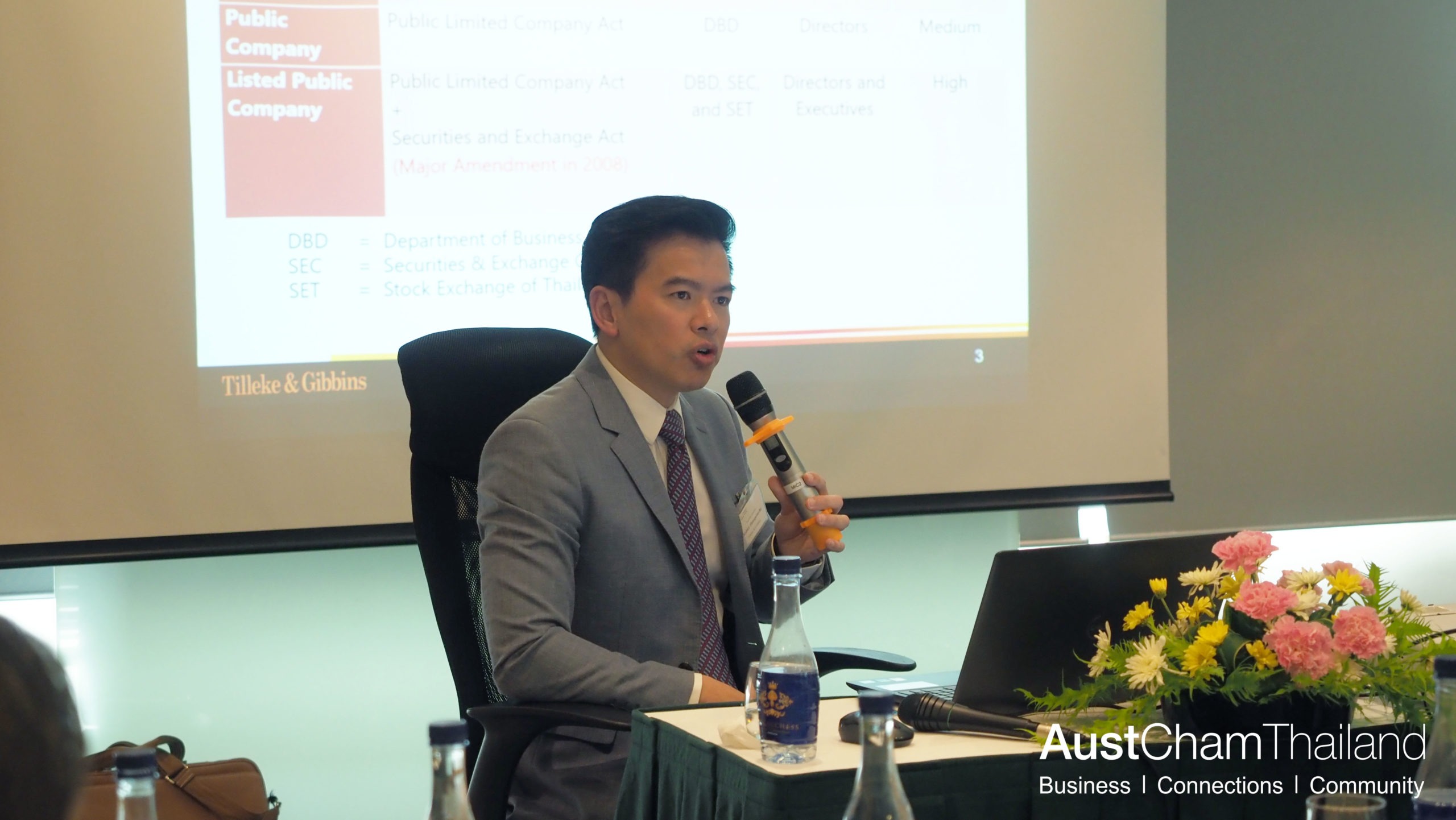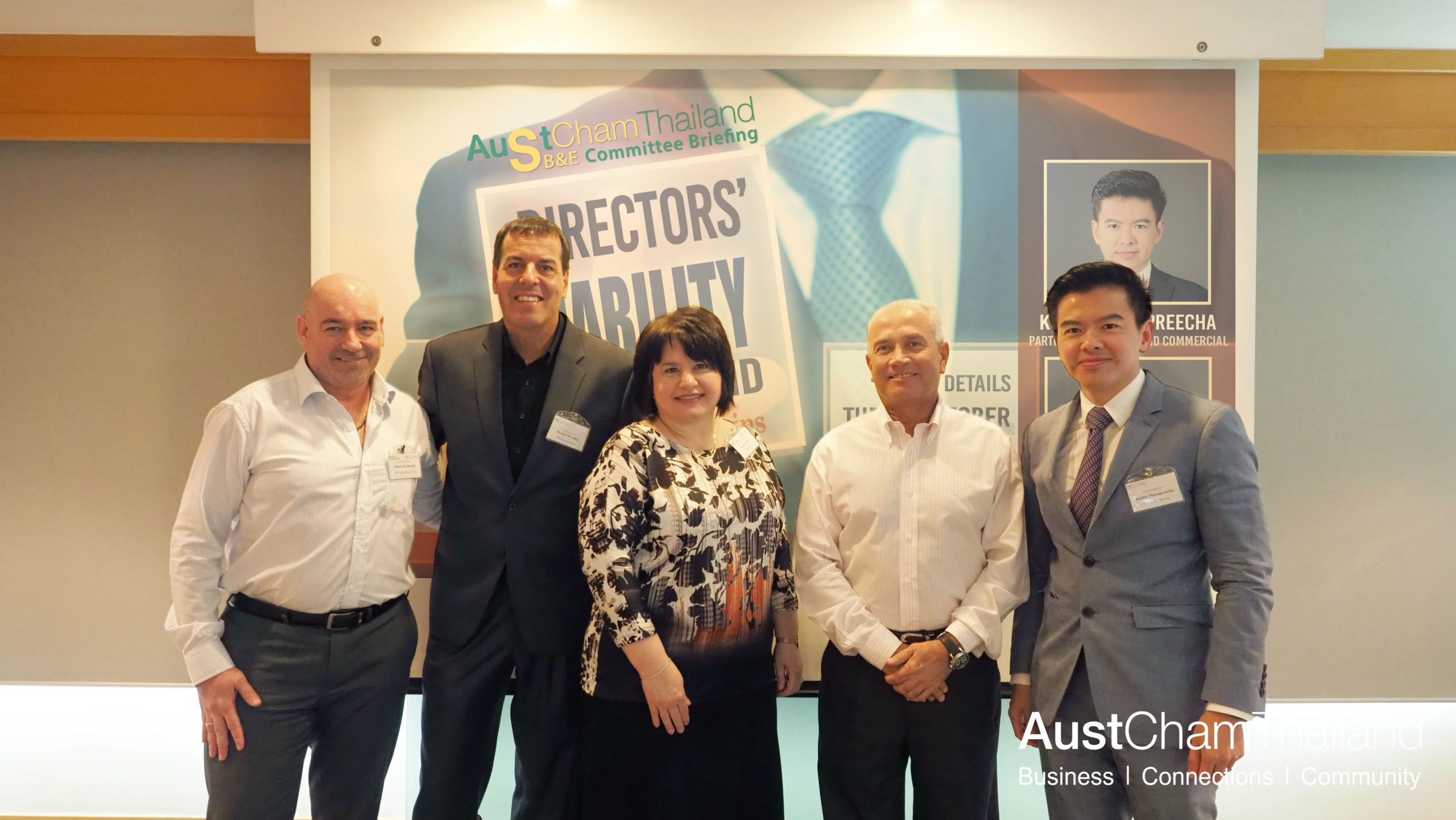 On Tuesday 29 October 2019, AustCham Thailand’s Small Business & Entrepreneur (SB&E) Committee held a business briefing on “Directors’ Liability in Thailand” at The Duchess Hotel. In this regard, we would like to thank speakers; Kobkit Thienpreecha, Partner, Corporate and Commercial and Michael Ramirez, Senior Consultant, Dispute Resolution, from Tilleke & Gibbins for taking their time to provide us with an overview of directors’ legal duties, their civil and criminal liabilities, and the litigation process, allowing us to stay up-to-date on the latest legal developments.
