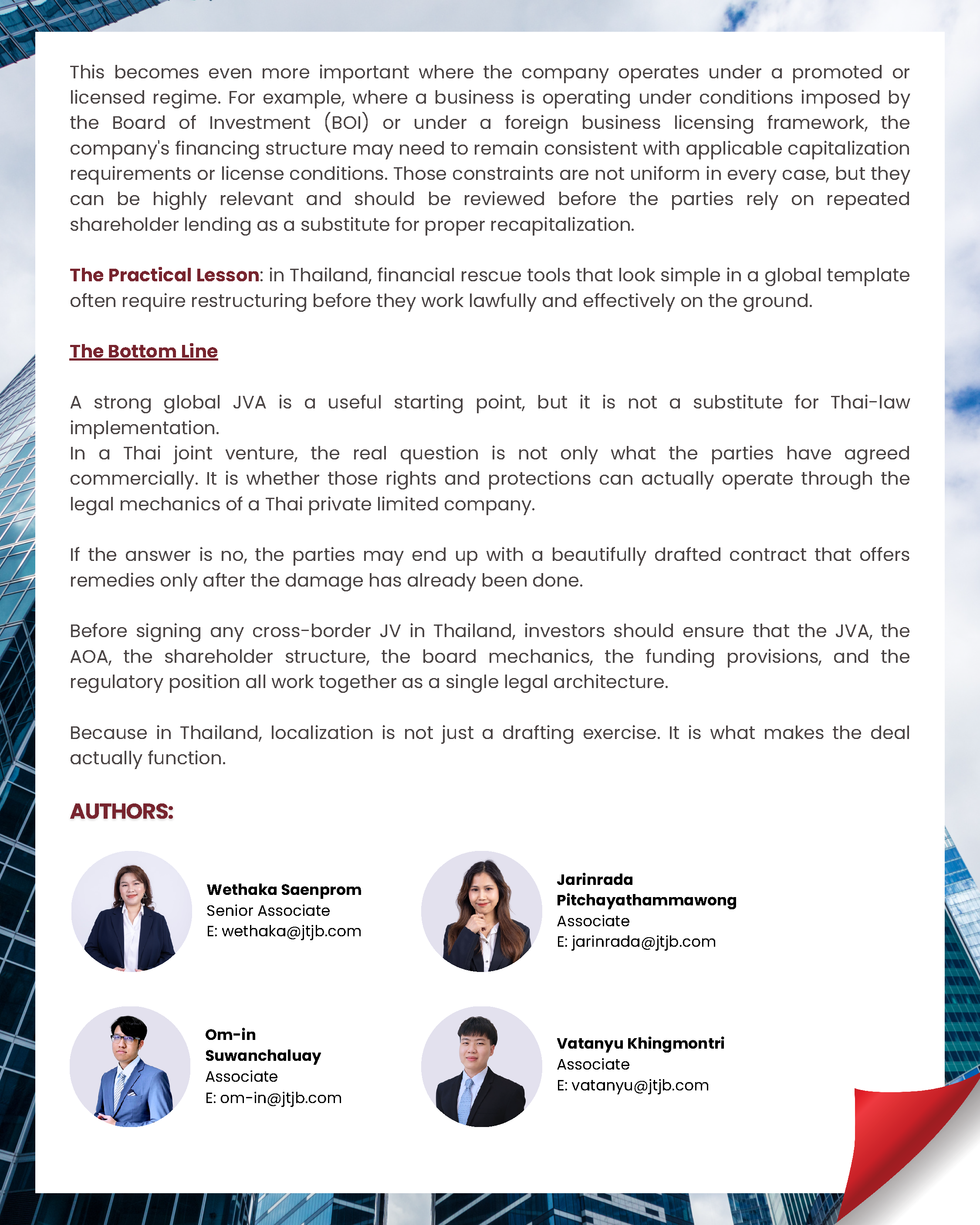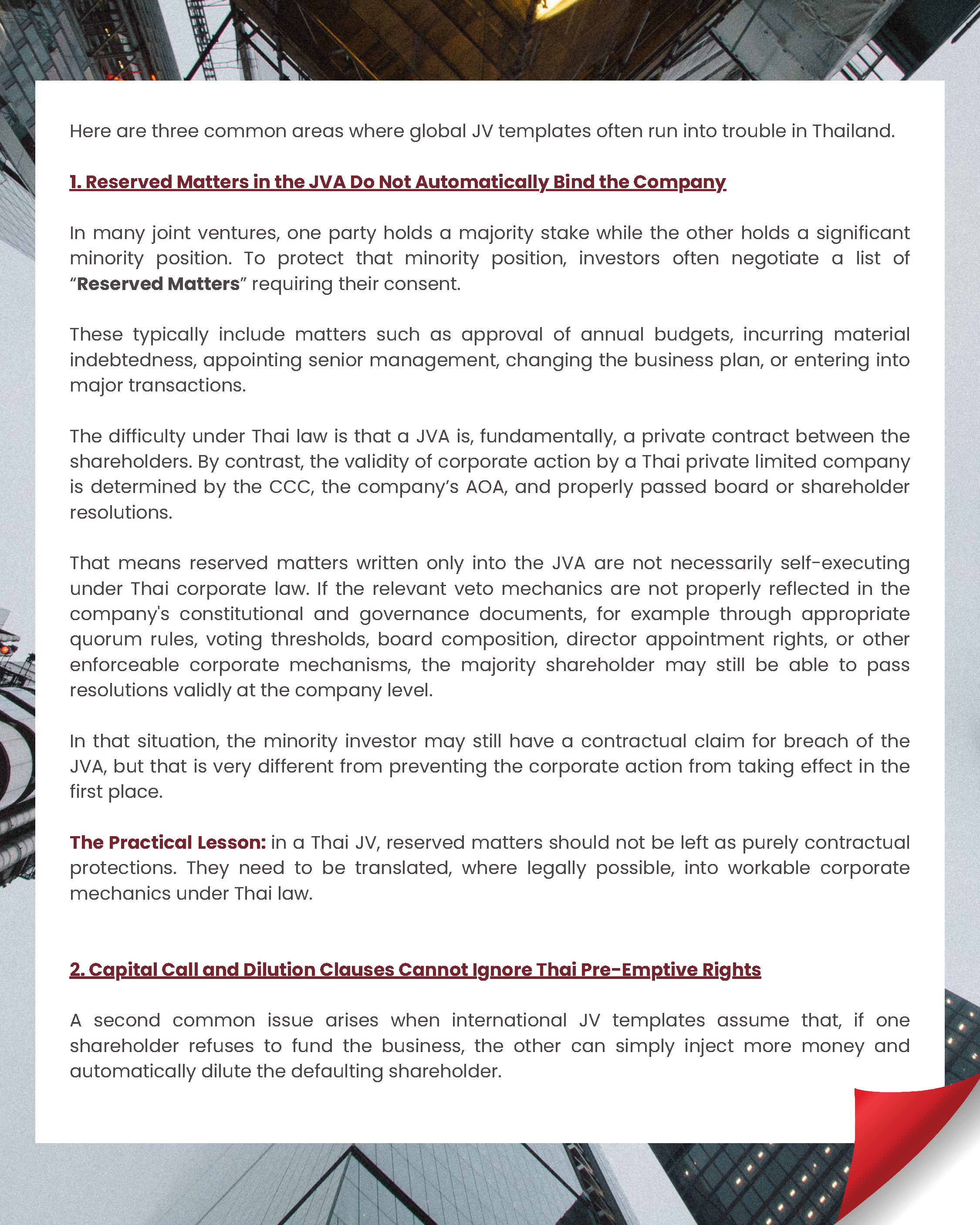 JTJB - 3 Common Traps When Global Joint Venture Templates Meet Thai Corporate Law
